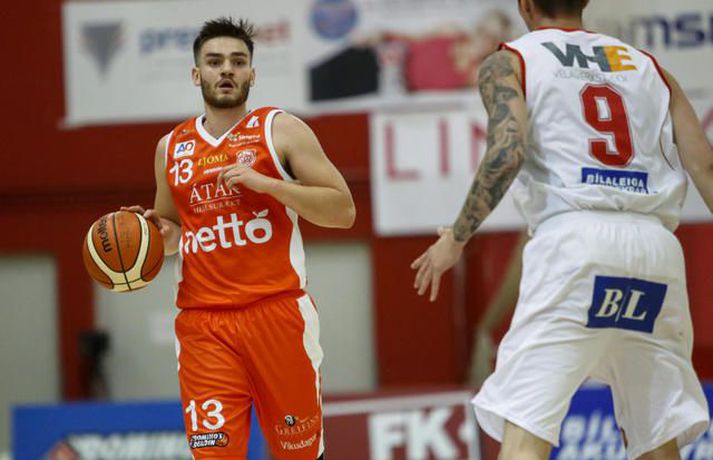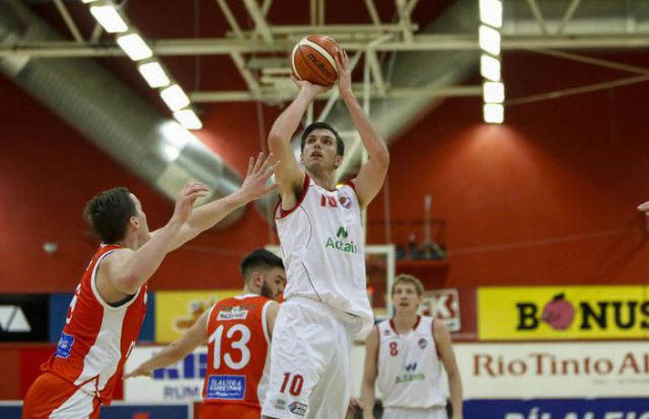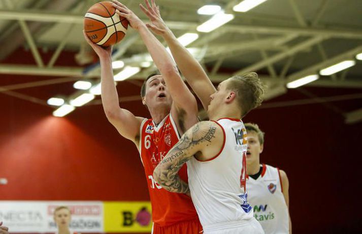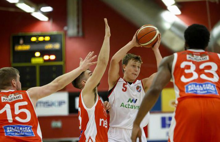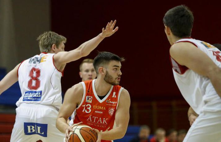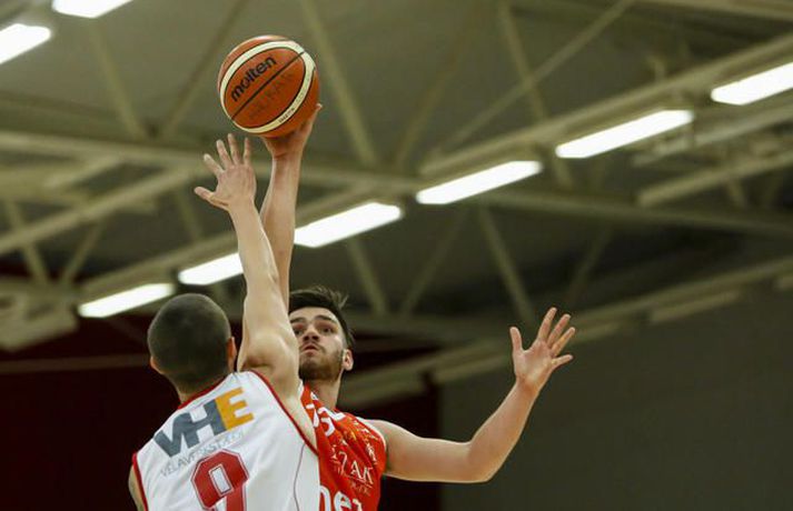 Umfjöllun, viðtöl og myndir: Haukar - Þór Ak. 74-66 | Haukar lönduðu sigri Þór Símon Hafþórsson skrifar 6. október 2017 21:45 Finnur Atli Magnússon tekur skot. vísir/ernir Haukar og Þór Ak. mættust í kvöld í Dominos deild karla. Búist var fyrir leik að um auðveldan leik væri að ræða fyrir heimamenn frá Ásvöllum en svo var aldeilis ekki. Haukar byrjuðu betur og voru 7-2 yfir í upphafi leiks. Þór Akureyri, sem margir spámenn hafa gengið svo langt að segja að liðið muni varla vinna leik í vetur, tóku svo yfir leikinn og fóru með verðskuldaða, 21-11, forystu eftir fyrsta leikhluta. Staðan var 25-35, gestunum í vil, í hálfleik og forystan alveg verðskulduð hjá gestunum. Staðan var svo 48-57 eftir þriðja leikhluta og Haukar eilítið byrjaðir að saxa á forystu Þórs. Haukar tóku svo gjörsamlega yfir fjórða leikhlutan og skoruðu 26 stig gegn einungis 9 stigum gestana sem virtust missa hausinn á loka mínútunum. Lokatölur 74-66, Haukum í vil sem tóku þetta á lokasprettinum.Af hverju unnu Haukar? Það er í rauninni með hreinum ólíkindum að Haukar hafi unnið þetta en liðið bauð upp á mjög dapra frammistöðu framan af leik og unnu þetta bara á síðustu sjö mínútum þar sem leikur heimamanna hrökk loks í gang á meðan leikur gestanna frá Akureyri kolféll. Ívar Ásgrímsson, þjálfari Hauka, gagnrýndi sína menn harkalega í lok leiks þrátt fyrir sigur og sagði að spilamennska sinna manna hefði ekki verið boðleg nema síðustu sjö mínútur leiksins. Mjög mikil vonbrigði fyrir Þór Ak. sem hefur verið spáð hroðalegu gengi í vetur. Það hefði verið ansi sterkt að vinna sinn fyrsta leik og það á Ásvöllum en allt kom fyrir ekki.Hverjir stóðu upp úr? Það er bara einn sem kemur til greina að nefna fyrst. Marques Oliver, sem fylgdi Hjalta Þór, þjálfara liðsins frá Fjölni til liðsins í sumar. Oliver átti gjörsamlega þennan leik frá A til Ö og átti svo sannarlega ekki skilið að enda í tapliðinu. Þessi 26 ára leikmaður endaði leikinn með 33 stig og 20 fráköst en þeir sem komust næst honum voru tveir leikmenn Hauka. Emil Barja með 13 stig og Finnur Atli sem var með 10 fráköst. Í raun unnu Haukar þetta á einhverri seiglu í lokinn en þeir Emil Barja og Finnur Atli voru þeirra bestu menn en þó einungis í restina.Hvað gekk illa? Spilamennska Hauka var hrikaleg framan af leik og þá sást það sérstaklega á fráköstum en Haukar, sem eru með miklu hávaxnara lið en Þór Ak. unnu varla frákast fyrstu þrjá leikhlutana. Þór Ak. missti svo hausinn og fóru að taka heimskuleg skot í erfiðum stöðum þegar nógur tími var eftir á skotklukkunni og misstu þetta frá sér. Hjalti Þór, þjálfari liðsins, var vægast sagt ekki sáttur í leikslok.Hvað gerist næst? Haukar heimsækja frábært lið Grindavíkur og þurfa að hefja leikinn af mun meiri krafti en þeir gerðu í kvöld ætla þeir sér ekki að fara sér að voða. Þór Ak. mætir Keflavík á heimavelli og þurfa að rífa sig upp úr vonbrigðum kvöldsins. Ef þeir spila alla leikhluta þá eins og þeir gerðu fyrstu þrjá í kvöld er aldrei að vita. Sérstaklega með mann eins og Marques Oliver í sínu liði.Haukar-Þór Ak. 74-66 (11-21, 14-14, 23-22, 26-9)Haukar: Emil Barja 13/8 fráköst/6 stoðsendingar, Finnur Atli Magnússon 12/10 fráköst, Haukur Óskarsson 12/5 fráköst, Hilmar Smári Henningsson 12/4 fráköst, Hjálmar Stefánsson 7, Arnór Bjarki Ívarsson 7, Kristján Leifur Sverrisson 5, Breki Gylfason 4/5 fráköst, Roger Camron Woods 2, Jón Ólafur Magnússon 0, Óskar Már Óskarsson 0, Ívar Barja 0.Þór Ak.: Marques Oliver 33/20 fráköst, Pálmi Geir Jónsson 12/8 fráköst, Bjarni Rúnar Lárusson 6, Ingvi Rafn Ingvarsson 6/8 fráköst/6 stoðsendingar, Júlíus Orri Ágústsson 5, Hreiðar Bjarki Vilhjálmsson 2, Sindri Davíðsson 2, Ragnar Ágústsson 0, Kolbeinn Fannar Gíslason 0, Einar Ómar Eyjólfsson 0, Baldur Örn Jóhannesson 0.Hjalti Þór: Áttum skilið sigur „Við áttum skilið sigur úr þessum leik,“ sagði Hjalti Þór Vilhjálmsson, þjálfari Þórs Ak., eftir grátlegt tap gegn Haukum í kvöld. „Við vorum með þennan leik alveg fram að fjórða leikhluta og vorum hreinlega betri en Haukarnir. Þetta var bara spurning um að kunna að klára leikinn í lokin.“ Þór Ak. er spáð hroðalegu gengi í vetur en nýliðarnir eru ekki taldir vera með nógu gott lið fyrir Dominos deildina. „Við erum ekki mikið að spá í hvað aðrir menn halda um okkur. Við ætlum okkur hluti í vetur og tökum einn leik í einu.“ Marques Oliver var frábær í leiknum og skoraði 33 stig fyrir Þór Ak. en hann á eftir að reynast ansi mikilvægur sé eitthvað að marka þessa frammistöðu. „Ég vissi alveg hvað ég var að fá. Var með hann í Fjölni og ég vissi að ég væri að væri að fá góðan leikmann.“ Hann segir enga ástæðu til að afskrifa Akureyringana. „Við erum ungt lið. Meðalaldur í kringum 20 ár og við eigum bara eftir að verða betri í vetur. Næsti leikur verður betri en þessi, ég get alveg lofað því.“vísir/antonOliver: Við komum sterkir til baka Marques Oliver var stórkostlegur í kvöld fyrir lið Þórs Ak. en hann var af sjálfsögðu vonsvikin með tapið. „Af sjálfsögðu. Alltaf sárt að tapa fyrsta leiknum. Við börðumst en töpuðum þessu í fjórða leikhlutanum en við komum sterkir til baka.“ Hann átti frábæran leik og skoraði 33 stig fyrir Þór Ak. ásamt því að taka 20 fráköst. „Það er alltaf betra að vinna. Það skiptir engu máli hversu mikið þú gerðir í leiknum ef þú tapar honum.“ Hann segir sérfræðingana vera að vanmeta Þór Ak. og segir að liðið eigi bara eftir að verða betra. „Síðan ég kom hingað þá hef ég séð mikla bætingu á mínum leik og líka hjá liðsfélögum mínum. Svo lengi