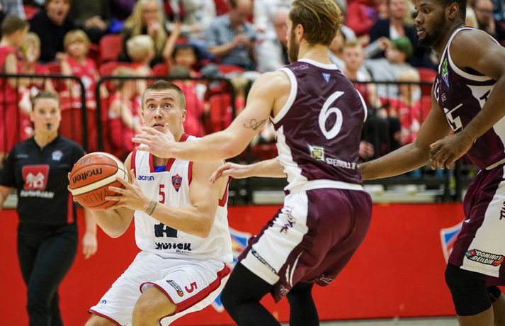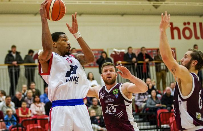 Eftir að hafa verið undir á móti nýliðum Vals náðu Stólarnir frá Sauðárkróki að stela sigrinum og stigunum tveimur á loka metrunum í fyrsta leik annarar umferðar Dominos deildar karla í körfubolta sem fram fór í Valsheimilinu í kvöld.Eyþór Árnason, ljósmyndari Vísis og Fréttablaðsins, var á leiknum í kvöld og náði þessum myndum hér fyrir ofan. Leikurinn byrjaði í raun hræðilega fyrir bæði lið, en mikið var um tapaða bolta á fyrstu metrunum og setti það tóninn fyrir leikinn. Hann einkenndist af misheppnuðum sendingum og skotum sem vildu ekki ofan í. Valsmenn voru með yfirhöndina allan leikinn, og leiddu 38-28 í hálfleik. Þeir komust mest í 12 stiga forystu, en alltaf náðu Stólarnir að klóra sig til baka. Eftir að hafa verið tíu stigum undir fyrir fjórða og síðasta leikhluta þá komust gestirnir yfir með þristi frá Axel Kárasyni þegar tvær og hálf mínúta voru eftir af leiknum. Tindastóll gaf ekki forystuna eftir og sigruðu á endanum með 73 stigum gegn 67.Afhverju vann Tindastóll? Þeir gerðu taktískar breytingar í fjórða leikhluta og á sama tíma hættu Valsmenn að hitta, en þeir skoruðu aðeins fimm stig í síðasta fjórðungi á móti 19 frá Tindastól. Þetta var svokallaður klassískur meistarasigur, spiluðu ekki vel en náðu að knýja fram úrslit.Hverjir stóðu upp úr? Antonio Hester dró vagninn fyrir Tindastól. Hann skoraði 31 stiga þeirra og leiddi liðið bæði í sókn og vörn. Sigtryggur Arnar Björnsson og Björgvin Hafþór Ríkharðsson áttu einnig ágætan leik fyrir gestina. Hjá Valsmönnum stóðu Illugi Steingrímsson og Austin Magnus Bracey upp úr.Hvað gekk illa? Þristanýting Tindastóls var hræðileg í leiknum. Þeir voru oft á tíðum að fá galopin skot sem hreinlega fóru ekki ofan í. Á sama tíma var liðið mikið að tapa boltanum, sérstaklega í fyrri hálfleik, en það gerðu Valsmenn reyndar líka.Tölfræði sem vekur athygli: Tindastóll hitti aðeins 20 prósent þriggja stiga skota sinna, eða sjö af 34 skotum.Hvað gerist næst? Valsmenn heimsækja Hött á Egilsstaði eftir viku á sama tíma og Tindastóll fær „granna“ sína frá Akureyri á Krókinn.Valur – Tindastóll 69-73 (18-9, 38-28, 64-55, 69-73). Valur: Austin Magnus Bracey 16 stig/3 fráköst/2 stoðsendingar, Illugi Steingrímsson 14 stig/2 fráköst/1 stoðsending, Sigurður Dagur Sturluson 13 stig/3 fráköst/4 stoðsendingar, Urald King 9 stig/10 fráköst/3 stoðsendingar, Oddur Birnir Pétursson 9 stig/2 fráköst/1 stoðsending, Benedikt Blöndal 3 stig/1 frákast/6 stoðsendingar, Birgir Björn Pétursson 2 stig/4 fráköst.Tindastóll: Antonio Hester 31 stig/13 fráköst/1 stoðsending, Sigtryggur Arnar Björnsson 15 stig/7 fráköst/1 stoðsending, Axel Kárason 10 stig/8 fráköst, Björgvin Hafþór Ríkharðsson 9 stig/3 fráköst/1 stoðsending, Christopher Caird 6 stig/6 fráköst, Pétur Rúnar Birgisson 2 stig/4 fráköst/9 stoðsendingar.Israel Martin: Liðið getur bætt sig mikið Þjálfari Tindastóls, Israel Martin, byrjaði á að gefa Valsmönnum heiður fyrir góða frammistöðu. „Þeir spiluðu vel og gerðu það líka á síðasta tímabili. Þeir eru nýtt lið með mikla orku á vellinum. Við munum ekki eiga neinn auðveldan leik á þessu tímabili.“ „Í síðasta leikhluta gerðum við taktíska breytingu sem virkaði. Við trúðum á vörnina okkar síðustu tíu mínúturnar og það réði að lokum úrslitum í leiknum,“ sagði Martin. Liðið sýndi ekki sínar bestu hliðar, en Martin var nokkuð ánægður með liðið í heildina. „Við erum með nokkra nýja leikmenn sem eru að breyta um hlutverk frá því á síðustu leiktíð. Við eigum mikla vinnu fyrir höndum en erum að vaxa sem lið með hverjum deginum og hverri æfingu.“ „Þetta lið getur bætt sig mikið, en það sem er mikilvegast er að við erum allir í þessu saman og erum að finna út úr því saman hvernig við förum að því að vinna leiki,“ sagði Israel Martin.Ágúst: Bjartsýnn ef þetta er bætingin milli leikja „Það er rosa lítið hægt að segja í rauninni, við köstum þessu bara frá okkur“ sagði Ágúst Sigurður Björgvinsson, þjálfari Vals. Hans menn skoruðu aðeins fimm stig í síðasta leikhlutanum, sem gaf Tindastóli færi á að sækja sigurinn. „Við erum yfir 61-44, svo við skorum bara átta stig á síðustu þrettán mínútunum eða eitthvað svoleiðis í leiknum, en við fengum fullt af opnum skotum, fengum meira að segja opin sniðskot, þetta bara vildi ekki niður hjá okkur.“ „Á meðan að einhvern veginn allt fór úrskeiðis í sókninni þá hrundi vörnin á sama tíma, sem hafði verið frábær í leiknum. Það var ekki sami kraftur í vörninni eins og hún var,“ sagði Ágúst. Hann gat þó tekið margt jákvætt út úr leik sinna manna. „Ef við ætlum að bæta okkur svona á milli leikja þá er ég bara mjög bjartsýnn á framhaldið. Við gerum okkur alveg grein fyrir okkar stöðu, við erum nýliðar í deildinni og þurfum að sanna okkur,“ sagði Ágúst Björgvinsson.Vísir/gettySigtryggur Arnar: Gerðum það sem þeir vildu „Við komum til að sækja tvö stig og við gerðum það,“ sagði Sigtryggur Arnar Björnsson, leikmaður Tindastóls, eftir leikinn. „Við vorum ekki nógu agressívir á körfuna til að byrja með, í fyrstu þrem leikhlutunum,“ sagði Sigtryggur, aðspurður hvað hafi farið úrskeiðis hjá Tindastól í dag. „Við vorum að skjóta allt of mikið fyrir utan, gera það sem þeir vildu að við gerðum, vorum ekki að hitta og þá þurftum við að bretya einhverju. Við byrjuðum að fara inn í teig og það gekk upp þá.“ Skotnýting Stólanna var vægast sagt hræðileg á köflum í leiknum, en samt voru þeir að fá nóg af góðum færum. „Þetta eru opin skot, eitthvað sem við hittum úr vanaleg