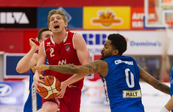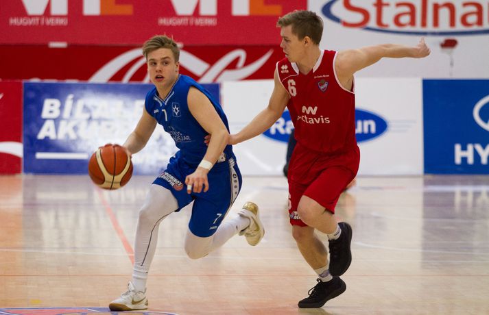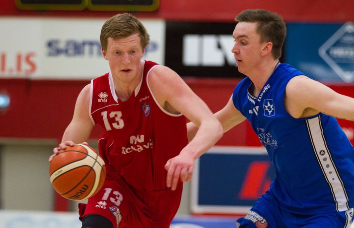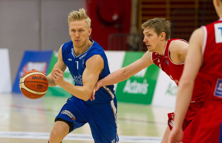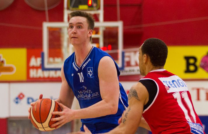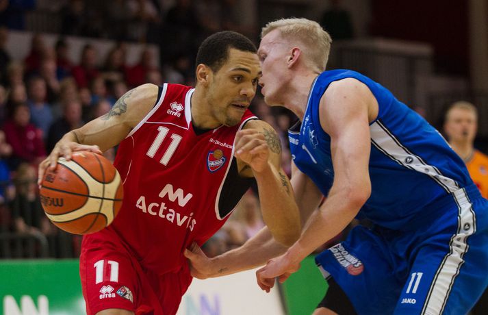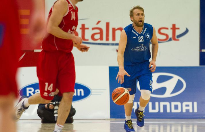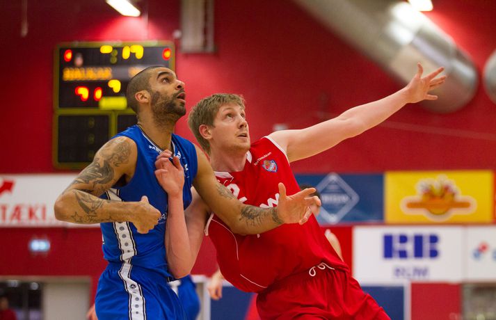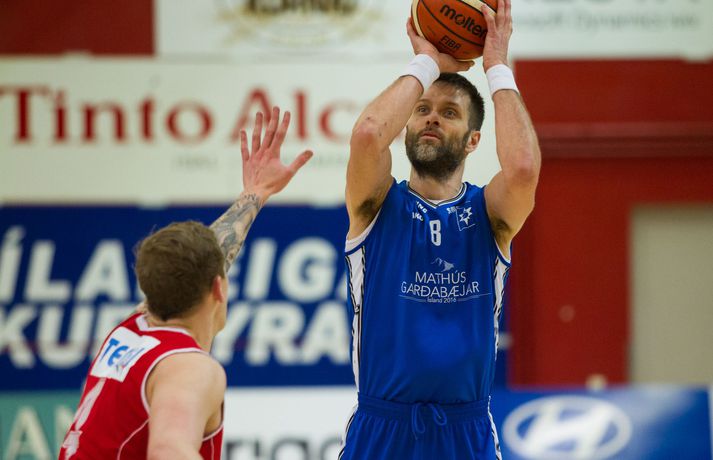 Topplið Hauka í Domino's deild karla í körfubolta tók í kvöld á móti Stjörnunni frá Garðabæ á heimavelli sínum í Schenker höllinni að Ásvöllum í Hafnafirði. Í lið Hauka vantaði landsliðsmanninn Kára Jónsson sem varð fyrir því óláni að fingurbrotna á æfingu með íslenska landsliðinu í síðustu viku. Leikurinn fór rólega af stað hvað stigaskor varðar og einkenndist frekar af góðum varnarleik liðanna til að byrja með. Haukarnir náðu þó fljótlega undirtökunum í leiknum og voru ávallt einu skrefi á undan Stjörnuliðinu, í hálfleik leiddu heimamenn með þremur stigum. Þriðji leikhlutinn var fjörugur og mikið skorað í honum framan af, undir lok leikhlutans náðu Haukarnir aðeins að slíta sig frá gestunum og leiddu með átta stigum fyrir fjórða og síðasta leikhlutann. Fjórði leikhlutinn endurspeglaði í raun gang leiksins. Stjörnumenn reyndu hvað þeir gátu að ná Haukunum en sterkari heimamenn virtust ávallt eiga til svör við áhlaupum gestanna. Það fór þó svo að lokum að Haukarnir styrktu stöðu sína á toppi deildarinnar með góðum sigri á liði Stjörnunnar sem á í baráttu um sæti í úrslitakeppninni.Afhverju unnu Haukar? Liðsheildin var sterk og greinilegt að liðið ætlaði ekki að láta fjarveru Kára Jónssonar setja sig út af laginu. Liðið spilaði vel varnarlega og hitti úr skotunum sínum á mikilvægum augnablikum í leiknum.Hverjir stóðu upp úr? Í jöfnu á góðu liðið Hauka var Paul Anthony Jones frábær með 23 stig og 13 fráköst. Hann setti niður mikið af erfiðum skotum sem ekki margir leikmenn í þessari deild geta sett niður. Einnig voru Finnur Atli, Emil Barja og Haukur Óskarsson mjög góðir. Í liði Stjörnunnar bar Hlynur Elías Bæringsson af með 23 stig og 18 fráköst.Hvað gekk illa? Erlendu leikmönnum Stjörnunnar voru mislagðar hendur í þessum leik og í raun voru þeir bara slakir. Það er alveg ljóst að Stjarnan á heimtingu á því að atvinnumenn sem fengnir eru hingað til lands til að styrkja liðið skili betra dagsverki en þeir gerðu í leiknum í kvöld.Hvað gerist næst? Haukar geta tryggt sér deildarmeistaratitilinn með sigir á ÍR í Seljaskóla í Breiðholtinu, á meðan Stjarnan leikur mikilvægan leik á heimavelli á móti Keflavík sem gæti ráðið miklu um framhaldið fyrir liðið og sætaskipan í úrslitakeppninni.Haukar-Stjarnan 80-73 (18-14, 22-24, 22-16, 18-19) Haukar: Paul Anthony Jones III 23/13 fráköst, Haukur Óskarsson 15, Hjálmar Stefánsson 10, Emil Barja 10/5 fráköst/10 stoðsendingar, Finnur Atli Magnússon 10/12 fráköst/4 varin skot, Breki Gylfason 5/4 fráköst, Kristján Leifur Sverrisson 5/5 fráköst, Hilmar Pétursson 2.Stjarnan: Hlynur Elías Bæringsson 23/18 fráköst, Darrell Devonte Combs 16/5 fráköst, Tómas Þórður Hilmarsson 13/8 fráköst, Eysteinn Bjarni Ævarsson 8, Róbert Sigurðsson 6, Collin Anthony Pryor 6, Dúi Þór Jónsson 1.Paul Anthony Jones hinn þriðji í leiknum í kvöldvísir/báraÍvar: Við vissum að það þyrftu aðrir leikmenn að stíga upp í okkar liði „Við vissum það þegar Kári meiddist að það þyrftu aðrir að stíga upp og það gerðu menn hérna í kvöld, það voru margir að skora hjá okkur í kvöld og margir að gera góða hluti,“ sagði Ívar Ásgrímsson, þjálfari Hauka, eftir leikinn. Ívar sagði það ljóst að Kári yrði ekki meira með liðinu vegna fingurbrotsins fyrr en komið væri í úrslitakeppnina. „Það er alveg 100% að hann verður ekki meira með þangað til komið er í úrslitakeppnina, við ætlum að hvíla hann til að eiga hann góðan þar. Þó við mættum nota hann fyrr myndum við ekki gera það, við erum með gott lið sem mun skila þessu fyrir okkur þangað til að Kári kemur aftur inn í þetta með okkur í úrslitakeppninni,“sagði Ívar Ásgrímsson.Arnþór Freyr Guðmundsson og Haukur Óskarssonvísir/báraHrafn: Við vorum ekki nógu beittir, því miður „Það voru þarna nokkur mikilvæg augnablik í þessum leik þar sem við höfðum tækifæri til að koma okkur inn í þetta en það hreinlega tókst ekki. Á meðan þeir voru að setja sín skot voru okkar ekki að detta þegar það skipti mestu máli. Það voru margir leikmenn að stíga upp í þeirra liðið og setja stór skot, ég verð að hrósa þeim fyrir það,“ sagði Hrafn Kristjánsson, þjálfari Stjörnunnar, eftir leikinn. Hrafn gagnrýndi reglur deildarinnar um erlenda leikmenn eftir leikinn. Mörg lið eru í dag með tvo bandaríska leikmenn, enn aðeins einn leikmaður sem ekki er með íslenskan ríkisborgararétt má vera inn á vellinum í einu. „Nei, þetta er í rauninni alveg handónýtt og kannski má segja að þetta sé deildinni til minnkunar eins og þetta er núna. Það sýnir okkur hvað mörg lið eru komin í þetta, að vera með tvo Kana, að þetta er ekki að virka lengur eins og þetta er. Mér fannst 4 +1 gefa okkur alveg rosalega mikið til margra ára en nú er þetta farið að taka frá okkur. Ég held að deildin megi alveg við því að deildin skoða þessi mál.“ sagði Hrafn Kristjánsson þjálfari Stjörnunnar að lokum.Arnþór Freyr Guðmundsson.Vísir/BáraTómas Þórður Hilmarsson.Vísir/BáraHlynur Bæringsson.Vísir/BáraArnþór Freyr Guðmundsson.Vísir/BáraPaul Anthony Jones III.Vísir/BáraBreki Gylfason.Vísir/BáraHjálmar Stefánsson.Vísir/BáraHalldór Geir Jensson, dómari.Vísir/BáraDarrell Devonte Combs.Vísir/BáraHlynur Bæringsson.Vísir/BáraDarrel Devonte Combs.Vísir/BáraÍsak Ernir Kristinsson.Vísir/BáraRóbert Sigurðsson.Vísir/BáraJóhannes Páll Friðriksson, dómari.Vísir/BáraEysteinn Bjarni Ævarsson.Vísir/BáraDúi Þór Jónsson.Vísir/BáraJustin Shouse, þjálfari.Vísir/BáraHilmar Pétursson.Vísir/BáraCollin Anthony Pryor, Stjörnunni, og Hjálmar Stefánsson, Haukum.Vísir/BáraColin An