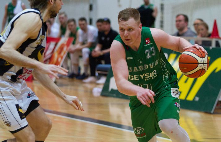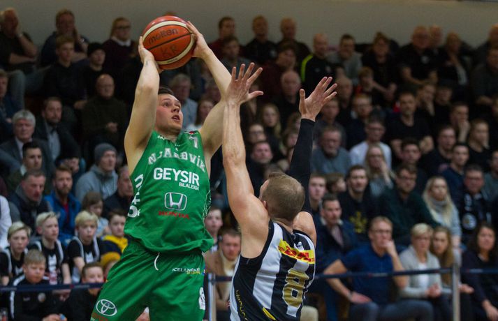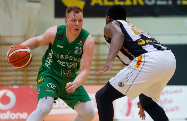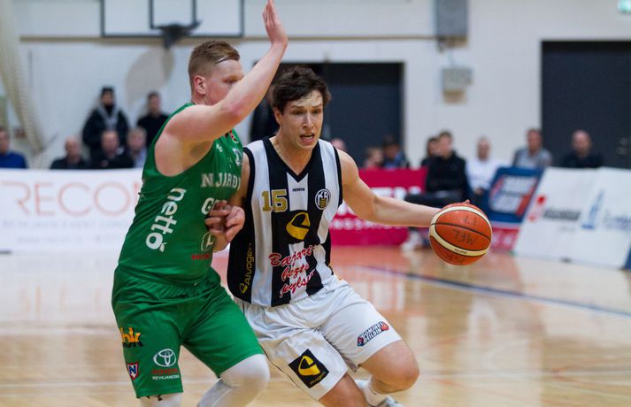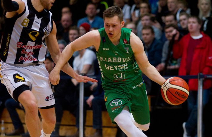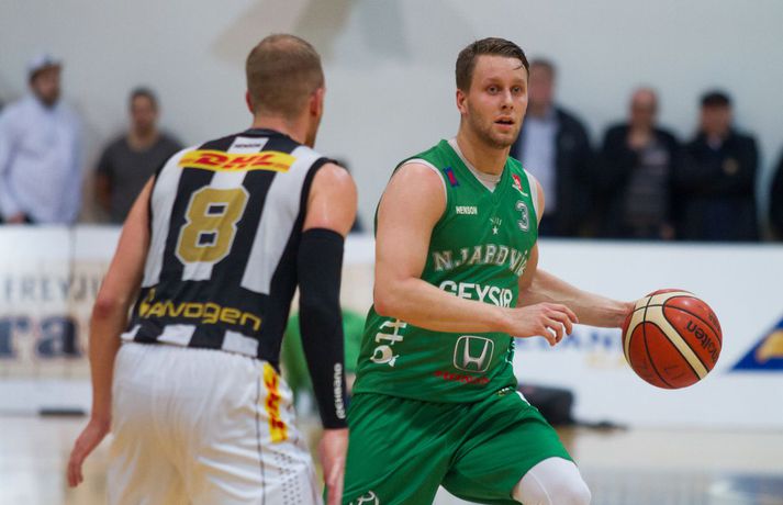 Fyrsti leikur átta liða úrslita Dominos deildarinnar í körfuknattleik á milli KR og Njarðvíkur fór fram fyrr í kvöld og það má með sanni segja að þetta hafi verið leikur tveggja hálfleika. KR náði forskoti í einvíginu og litu ansi vel út á meðan þeir náðu í það. Fyrri hálfleikurinn var hrikalega spennandi og jafn nánast allan tímann þar sem liðin áttu góða spretti í fyrsta leikhluta og skiptust svo á að skora í öðrum leikhluta framan af leikhlutanum. Í lok fyrri hálfleiks komust KR-ingar á sprett sem gerði það að verkum að heimamenn fóru inn í hálfleik með sex stiga forskot. Njarðvíkingar skoruðu fyrstu fjögur stig seinni hálfleiksins en eftir það kláruðu KR-ingar leikinn með því að ná 13-0 sprett og litu þeir ekki til baka eftir það. Góð vörn og skilvirkur sóknarleikur sló gestina út af laginu og heimamenn keyrðu heim með fyrsta sigurinn og hefja titilvörnina með besta móti og leiða einvígið 1-0 áður en farið er til Njarðvíkur á mánudaginn og barist í Ljónagryfjunni.Afhverju vann KR? Efir jafnan fyrri hálfleik skellti KR í lás varnarlega og hittu úr nánast öllu á góðum kafla í byrjun seinni hálfleiks. Þeir náðu 13-0 sprett sem skapaði gott forskot sem heimamenn bættu við jafnt og þétt þangað til munurinn var orðinn 30 stig þegar tæpar fjórar mínútur voru eftir af leiknum. Það er mjög gott að hafa leikmenn eins og Jón Arnór Stefánsson og Kristófer Acox sem leiða liðið ásamt því að fá gott framlag frá Birni Kristjánssyni, Pavel Ermolinskij og Kendall Pollard. Njarðvíkingar þurfa að gera meira af því sama og þeir gerðu í fyrri hálfleik til að halda spennu í einvíginu.Hvað gekk illa? Sóknarleikur gestanna gekk bölvanlega í seinni hálfleik en það er náttúrlega góðum varnarleik heimamanna að þakka sem þvinguðu Njarðvíkinga út úr sínum aðgerðum. Það gerði það að verkum að þegar opnu skotin komu og sniðskotin þá geiguðu þau. Vítanýting gestanna var líka afleit í fyrri hálfleik en það kannski skiptir engu máli þegar upp er staðið.Bestu menn vallarins? Hjá KR voru það áðurnefndir Jón Arnór Stefánsson og Kristófer Acox sem stóðu sig best. Jón Arnór skilaði 21 stigi í hús og ef mig minnir rétt þá voru þetta allt mikilvæg stig í þeirri merkingu að stigin komu á góðum tímapunktum sem juku stemmningu og hleyptu sínum mönnum á sprett. Kristófer Acox fyllti síðan mjög vel í tölfærði dálkana sína, 19 stig, 13 fráköst, fjórar stoðsendingar og tvö varin skot. Allt þetta með 75% skotnýtingu og einum töpuðum bolta. Hjá Njarðvík var það Logi Gunnarsson sem dró vagninnm með 16 stig og 4 stoðsendingar. Honum sárlega vantaði hjálp frá sínum mönnum í síðari hálfleik og vonum við að fleiri stígi upp í Ljónagryfjunni á mánudag.Hvað gerist næst? Njarðvíkingar fara heim og sleikja sárin og undirbúa sig fyrir að taka á móti KR í Ljónagryfjunni á mánudag. KR fær að fagna aðeins um helgina en mega ekki gleyma því að nú erum við komin í úrslitakeppnina og einn góður leikur er langt í frá að vera nóg. Finnur: Það var skrekkur í okkurvísir/hannaÞjálfari KR var að vonum ánægður með sína menn sem náðu góðum úrslitum gegn Njarðvík í fyrsta leik í átta liða úrslitum Íslandsmótsins. Hann var spurður að því hvað hann hafi sagt við sína menn í hálfleik en fyrstu mínútur í seinni hálfleik réðu úrslitum leiksins. „Það voru ákveðnir hlutir sem við þurftum að einfalda og þá sérstaklega varnarlega. Við gerðum nokkra hluti virkilega vel varnarlega í seinni hálfleik fyrir utan seinustu tvær til þrjár mínúturnar. Við héldum þeim í einhverjum 20 stigum framan af hálfleiknum og þar kom þéttleikinn sem okkur vantaði í fyrri hálfleik ásamt því að við sýndum þolinmæði í sóknarleiknum“. Finnur talaði um að skrekkur hafi verið í sínum mönnum vegna tilefnisins þegar hann var spurður út í það hvernig hann sæi einvígið fyrir sér. „Þetta verður líklega mjög svipað, það sást kannski á okkur að þetta var fyrsti leikur í einvíginu. Það var skrekkur í okkur bæði í vörn og sókn og vorum við fullmikið að flýta okkur en það er gott fyrir sjálfstraustið að koma hérna og ná í góða frammistöðu. Þetta er bara leikur eitt og við vitum það að þótt að við höfum náð góðum fyrsta leik á móti Njarðvík þá er leikur tvö allt annað og við þurfum að læra af þessum leik, bæði það góða og slæma, og vera svo klárir í leikinn á mánudaginn“. Um hvíld manna sagði Finnur: „Já það er mikilvægt að ná að hvíla menn en einnig að koma fleiri mönnum inn í róteringuna, menn voru að gera vel í dag og sérstaklega kannski Siggi [Sigurður Þorvaldsson] sem hefur átt erfitt uppdráttar eftir meiðslin þannig að það var gott að fá hann inn og fleiri sem hjálpuðu til við skorið.“vísir/báraLogi Gunnarsson: Þurfum að lengja góðu kaflana „Við litum mjög vel út í fyrri hálfleik og mér leið mjög vel þegar hálfleikurinn var að klárast. Við vorum að spila vel í fyrri hálfleik en hleyptum þeim í smá áhlaup sem þeir héldu áfram með í seinni hálfleik og við náðum ekki að stoppa. Það var mjög erfitt hjá okkur á meðan þetta leit út fyrir að vera mjög auðvelt fyrir þá. Við sýndum það samt í fyrri hálfleik að við erum með flott lið og eigum alveg að geta staðið í þeim þótt að þeir séu góðir og með menn í öllum stöðum þá getum við byggt á góðu hlutunum í fyrri hálfleik“, sagði Logi Gunnarsson um leikinn á móti KR fyrr í kvöld. Logi var spurður að því hvað hans menn þurfi að gera fyrir næsta leik og voru það áhlaupin sem skipta mestu máli. „Við þurfum að lengja þessa góðu kafla hjá