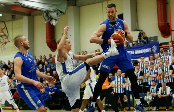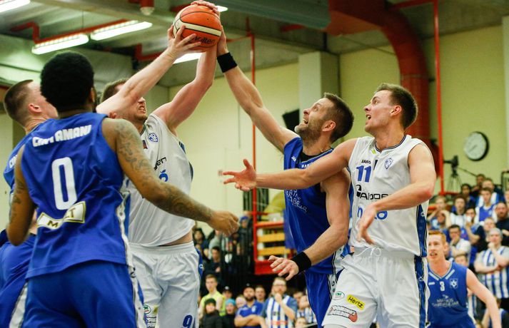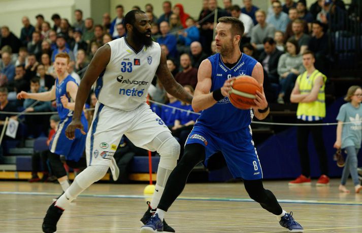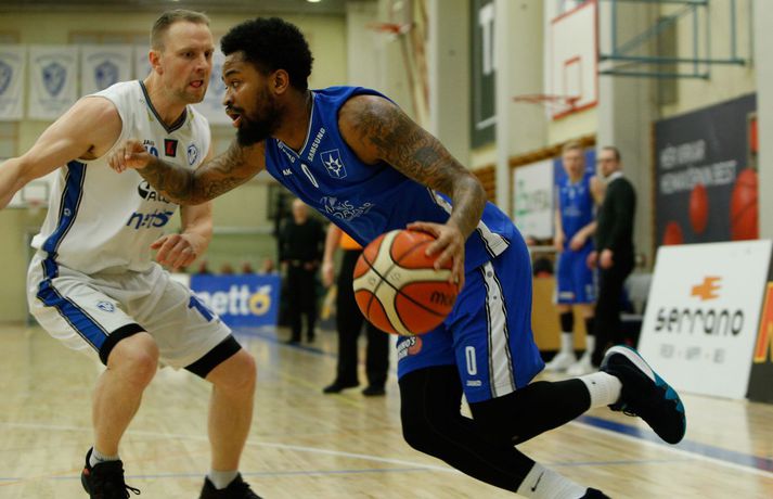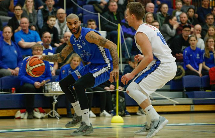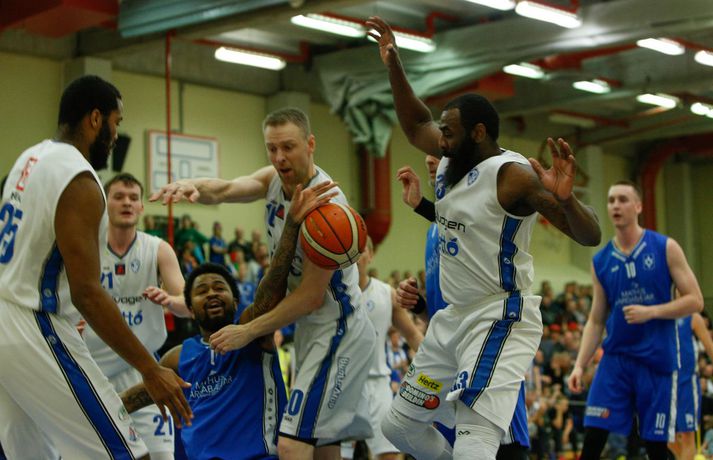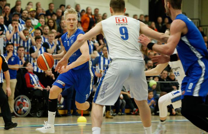 Umfjöllun, viðtöl og myndir: ÍR - Stjarnan 79-73 │ ÍR tók forystuna Ívar Kristinn Jasonarson skrifar 15. mars 2018 22:00 Úr leiknum í kvöld, en Ryan Taylor var erfiður viðureignar. vísir/andri marinó ÍR-ingar tóku á móti Stjörnunni í fyrsta leik liðanna í 8-liða úrslitum um Íslandsmeistaratitilinn í körfubolta í kvöld. ÍR-ingar fóru með sex stiga sigur af hólmi, 79-73, og eru því komnir með yfirhöndina í einvíginu. Vinna þarf þrjá leiki til að komast í undanúrslitin. Strax frá fyrstu mínútu var ljóst að mikið var í húfi. Bæði lið sýndu mikinn baráttuanda og ætluðu sér sigur hér í kvöld. Liðin spiluðu góðan varnarleik og gekk þeim erfiðlega að skora fyrstu mínúturnar, en staðan 3-3 eftir fyrstu fimm mínútur leiksins. Eftir það tóku heimamenn frumkvæðið og voru yfir eftir fyrsta leikhlutann, 18-14. ÍR hélt yfirhöndinni í öðrum leikhluta og fór með átta stiga forystu inn í hálfleikinn, 39-31. Í byrjun síðari hálfleiks virtust ÍR-ingar ætla að sigla fram úr og vor komnir með 15 stiga forskot um miðbik þriðja leikhluta. En þá hrukku Stjörnumenn í gang með Hlyn Bæringsson í broddi fylkingar og minnkuðu muninni niður í fimm stig. ÍR-ingar hleyptu Stjörnumönnum hins vegar ekki nær og fór með 10 stiga forskot inn í fjórða leikhlutann. Jafnræði var með liðunum í síðustu mínúturnar og Stjörnumenn, sem misstu Róbert Sigurðsson, leikstjórnanda sinn, af velli með fimm villur áttu erfitt með að vinna þann mun upp. Svo fór að ÍR-ingar, með Ryan Taylor innan sinna raða, sigruðu leikinn 79-73. Afhverju vann ÍR? ÍR-ingar spiluðu frábæra vörn í leiknum og Stjörnumenn reyndar líka, enda um tvö af bestu varnarliðum deildarinnar að ræða. Mikil barátta var í báðum liðum en ÍR-ingar voru skrefinu á undan allan leikinn. Skotnýting Stjörnumanna var ekki góð í kvöld og má segja að það hafi ráðið úrslitum í lokin.Hverjir stóðu upp úr? Ryan Taylor átti stórleik í liði heimamanna. Hann var stigahæstur í leiknum með 32 stig og náði í níu fráköst. Hann dreif leik heimamanna áfram og skoraði körfur á mikilvægum tímapunktum í leiknum. Í liði gestanna var það eins og svo oft áður Hlynur Bæringsson sem stóð upp úr. Hann var ragur við stigaskorun framan af en endaði með 15 stig og var stigahæstur Stjörnumanna. Hlynur var með einnig 22 fráköst í kvöld, sjö fleirum en allir liðsfélagar hans til samans. Hvað gekk illa? Báðum liðum gekk illa að skora til að byrja með sem kemur lítið á óvart enda tvo góð varnarlið að eigast við. En eins og fyrr segir var skotnýting Stjörnumanna ekki góð í kvöld. Í fyrri hálfleik hittu Stjörnumenn einungis úr einu af 18 þriggja stiga skotum sínum og enduðu leikinn með sex þriggja stiga skot niður af þrjátíu. ÍR-ingar voru slakir á vítalínunni í kvöld, enduðu með 53% vítanýtingu.Hvað er næst? Næsti leikur liðanna er á mánudaginn í Ásgarði. Þar þurfa Stjörnumenn að svara fyrir sig en þrjá leiki þarf til að komast í undanúrslitin.Gífurleg barátta í leiknum í kvöld. Bláklæddur Hlynur Bæringsson.vísir/andri marinóHlynur: Þetta var skemmtilegur leikur Hlynur Bæringsson, fyrirliði, Stjörnunnar var að vonum svekktur í leikslok. „Við ætluðum að byrja seríuna sterkt og vinna hér á útivelli. En þetta samt var skemmtilegur leikur.“ Aðspurður um hvað hafi skilið á milli liðanna í kvöld sagði Hlynur það hafa verið skotnýtingin. „Við hittum illa úr þriggja stiga skotunum en þeir að sama skapi vel. Ég held að það hafi verið munurinn á liðunum hér í kvöld.“ „Það vantaði ró og betri framkvæmd hjá okkur í lokin. Við vorum svolítið hauslausir. Síðustu mínúturnar vorum við ekki að finna nógu góðar lausnir við því sem þeir voru að gera,“ sagði Hlynur. Góð mæting var á leikinn í kvöld og stemningin á pöllunum mikil, enda stuðningsmannasveit ÍR ein sú besta á landinu. „Það er ekkert erfitt að fá andann upp í þessu liði í svona miklum látum. Mér finnst auðvelt að spila í svona stemningu,“ sagði Hlynur en næsti leikur liðanna leggst vel í hann. „Við verðum helst að vinna og stefnum á að gera það. Ef við spilum þá svipað og í kvöld og hittum aðeins betur þá getum við það.“Hvað segiru, vinur?vísir/andri marinóMatthías: Taugarnar voru í lagi í lokin Matthías Orri Sigurðarson, leikmaður ÍR, var ánægður með varnaleik sinna mann í kvöld. „Við höldum þeim í 73 stigum. Taugarnar voru líka í lagi í lokin, þegar við vorum að ströggla náðum við góðum körfum. Við ætlum að vinna hér á heimavelli, vorum mjög harðir allan tímann og slöppuðum sjaldan af í leiknum. Við erum komnir í 1-0 og erum spenntir að spila við þá aftur.“ Þessi sömu lið mættust í 8-lið úrslitum í fyrra en þá Stjörnumenn unnu einvígið, 3-0. „Ég fór í viðtal eftir að þeir sópuðu okkur út í fyrra og ég sagði að ég sem leiðtogi og liðið okkar er með þannig karakter að við komum til baka. Þetta er búið að sitja í okkur lengi, við erum loksins komnir í úrslitakeppnina og við fengum þá aftur.” Markmiðið er að snúa taflinu við og vinna þá 3-0, við förum í alla leiki til að vinna. Við unnum þá í Garðabænum fyrr í vetur og við teljum okkur geta gert það aftur.“Hrafn: Auðvelt að vera vitur eftir á Hrafn Kristjánsson, þjálfari Stjörnunnar, var ánægður með spilamennsku sinna manna í kvöld þrátt fyrir tapið. „Ég er stoltur af því hversu vel strákarnir börðust. Við vorum fínir í fyrri hálfleik og sköpuðum okkur mikið af góðum færum en boltinn fór bara ekki ofan í körfuna,” sagði Hrafn eftir leikinn í kvöld. „Við buðum upp á 5% skotnýtingu í þriggja stiga og 20% í tveggja stig