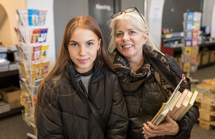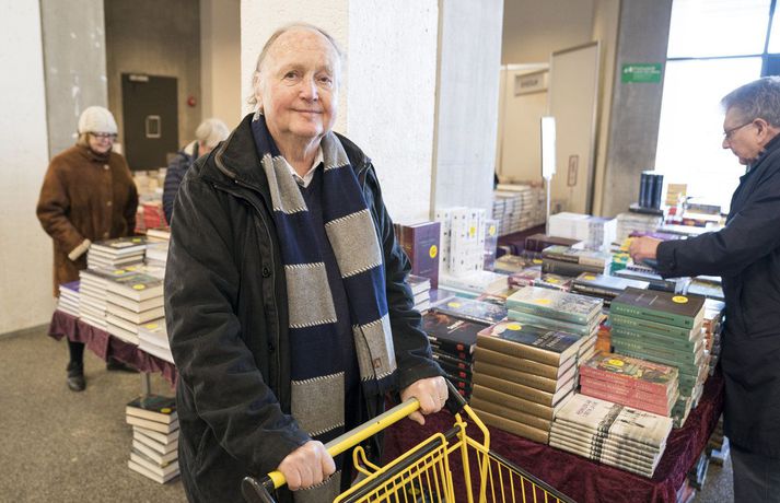 „Við eigum nokkuð af bókum. Reyndar svo mikið að nú verðum við eiginlega að fara að hætta að kaupa þær, en þegar maður kemur á þennan markað lætur maður alltaf freistast,“ segir Hreinn Bergsveinsson sem mættur er á svæðið ásamt Valgerði Pálsdóttur. Meðal bóka sem vekja áhuga þeirra er ritsafn Þorsteins frá Hamri og barnabækur, þar á meðal Vaknaðu, Sölvi eftir Eddu Heiðrúnu Backman og Þórarin Eldjárn og Stígvélaði kötturinn. „Við erum með barnabarn sem verður þriggja ára nú í mars, heldurðu að hann verði ekki að fara að lesa,“ segir Hreinn kankvís. Hafsteinn Guðjónsson og Anna Helgadóttir eru einnig í bókakaupum og sömuleiðis með börnin í huga. „Það er mikilvægt að börn lesi,“ segir Anna og sýnir blaðamanni stafla af bókum um hinn skemmtilega Skúla skelfi. Orð að sönnu eftir Jón G. Friðjónsson er einnig í körfunni. „Ég hef gaman af slíkum bókum og kaupi þær oft,“ segir Hafsteinn. Anna valdi sér Snarkið í stjörnunum eftir Jón Kalman Stefánsson sem er höfundur sem hún hefur mikið dálæti á. Smásögur heimsins, Rómanska Ameríka er einnig með í bókakaupunum. „Við erum nýbúin að vera í Perú þannig að okkur finnst freistandi að lesa sögur frá þessum heimshluta,“ segja þau.Lifandi bækur Blaðamaður rekst á Svein Einarsson, fyrrverandi þjóðleikhússtjóra. Eiginkona hans, Þóra Kristjánsdóttir, er skammt frá niðursokkin í að skoða bækur. Sveinn segist hafa komið á bókamarkaðinn frá unga aldri. „Það er svo gaman að vera innan um bækur, þær eru svo lifandi.“ Hann segir þau hjón eiga mikið af bókum. „Reyndar svo margar að nú er ég kominn á það stig í lífinu að ég er að gefa bækur frá mér. Á seinni árum hef ég sagt við sjálfan mig þegar ég mæti á bókamarkaðinn: Nú kaupi ég ekkert því við eigum svo mikið af bókum, en hef alltaf svikið það. Alltaf geng ég út af markaðnum með fullt af bókum.“ Meðal bóka í kerrunni hjá Sveini er Orð að sönnu. „Ég hef svo gaman af orðaleikjum og spakmælum og er alltaf að geta mér þess til hvernig orðatiltæki hafa orðið til,“ segir hann. Ármann Schelander er að skoða bókina Eitt þúsund tungumál þegar blaðamaður ónáðar hann. Hann segist hafa mestan áhuga á fræðibókum og hefur þegar ákveðið að kaupa Jörund hundadagakonung eftir Sarah Bakewell og líklegt er að tungumálabókin verði sömuleiðis fyrir valinu. Hann segist einnig vel geta hugsað sér að kaupa bók um málvísindi. Katrín Ósk Þráinsdóttir segist yfirleitt mæta á markaðinn enda sé hún bókaormur. „Mér finnst líka gaman að gefa bækur,“ segir hún með fangið fullt af bókum, þar innan um eru þýddar erlendar skáldsögur sem hún ætlar meðal annars að gefa. Þar á meðal eru Undur eftir RJ Palacio og Ólæsinginn og Víga-Anders eftir Jonas Jonasson. „Svo er ég með bækur fyrir litlar frænkur sem búa erlendis, ég vil leggja mitt af mörkum til að halda íslenskunni að þeim. Ég hef áhuga á göngum og valdi mér 25 gönguleiðir á Þingvallasvæðinu og er svo með hjólabók fyrir manninn minn sem gæti nýst honum vel.“Bækur til fermingargjafa Baldur Þórhallsson og Felix Bergsson eru að sanka að sér bókum þegar blaðamaður mætir þeim. Baldur hefur verið bókaormur frá unga aldri. „Ég er alinn upp við Hellu á Rangárvöllum og þá biðum við krakkarnir alltaf spennt eftir því að bókamarkaðurinn væri opnaður á kaupfélagsloftinu. Bókamarkaðurinn stóð frá 1. desember fram yfir jól. Ég gat ekki beðið eftir að sjá nýjustu jólabækurnar, keypti kannski eina og pantaði aðrar í jólagjöf.“ „Við erum bæði að kaupa fyrir okkur sjálfa og bækur til gjafa,“ segir Felix sem segist iðulega mæta á bókamarkaðinn. Meðal þeirra bóka sem hann keypti fyrir sjálfan sig eru Egils sögur eftir Pál Valsson og Stuð vors lands eftir Dr. Gunna. Úr fjötrum – Saga Alþýðuflokksins eftir Guðjón Friðriksson er bók sem Baldur valdi sér ásamt bókinni Stríðið mikla eftir Gunnar Þór Bjarnason. Í körfunni eru einnig bækur sem þeir segja ætlaðar til fermingargjafa, þar á meðal Vísindabókin. Þóra Guðmundsdóttir er mætt á bókamarkaðinn ekki síst í þeim erindagjörðum að kaupa bækur til fermingargjafa. „Ég er ekki fylgjandi því að gefa einungis peninga í fermingargjöf,“ segir hún. „Mér finnst að það eigi að gefa bækur og kannski láta einhvern pening fylgja með. Til fermingargjafa hefur hún meðal annars valið draumaráðningabók, tilvitnanabók og Eitt þúsund tungumál, en blaðamaður sér einmitt nokkra gesti markaðarins skoða þá bók af miklum áhuga. „Unglingarnir eiga eftir að kíkja í þessar bækur einhvern tíma,“ segir Þóra af ákveðni.Í minningu mömmu Gerður Steinarsdóttir og Erlín Katla Birgisdóttir eru síðustu gestir markaðarins sem blaðamaður heilsar upp á. Erlín, sem segist lesa þó nokkuð, er að leita að bókum við hæfi. Hún á sína uppáhaldshöfunda og nefnir Yrsu Sigurðardóttur og Stefán Mána. Gerður er að kaupa barnabækur handa barnabörnunum. „Mér finnst gífurlega mikilvægt að þau lesi bækur. Ég byrja að lesa fyrir þau strax þegar þau eru kornung. Það skiptir öllu máli fyrir málþroska og orðaforða. Ég er líka með tvítyngd barnabörn og lykillinn að því að þau nái góðum tökum á íslensku er að þau lesi bækur á því máli,“ segir hún. Hin sívinsæla Pollýanna er meðal þeirra bóka sem hún hefur ákveðið að kaupa. „Það er í minningu mömmu sem var Pollýannan,“ segir hún. Blaðamaður og ljósmyndari kveðja markaðinn eftir að ljósmyndarinn hefur fallið í freistni og sankað að sér bókum til kaupa. Blaðamaður ætlar svo að mæta um helgina með tveggja ára bókelska frænku sína sem 