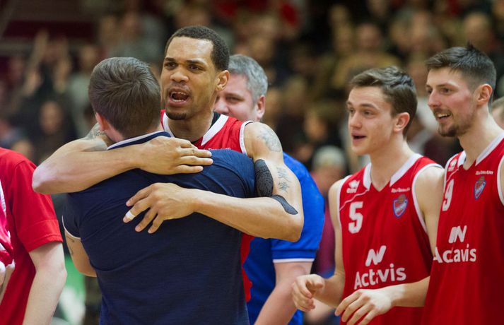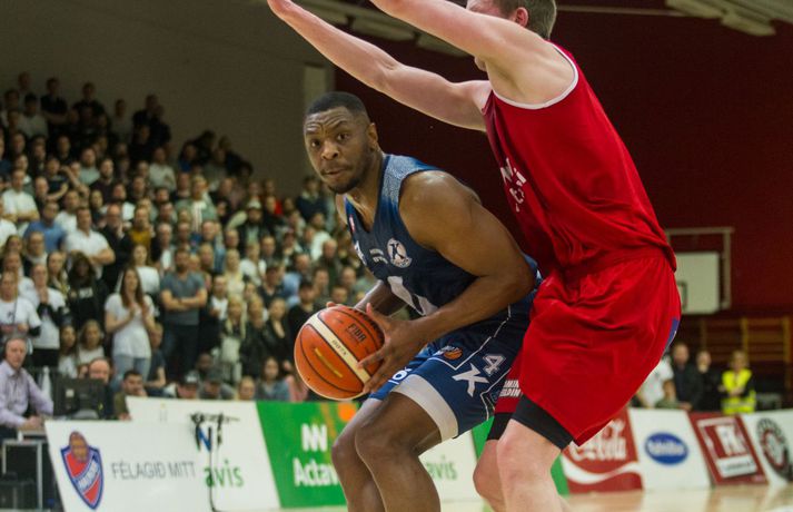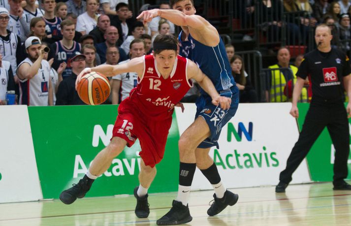 „Kannski áttuðum við okkur á því að við myndum fara í sumarfrí en mér fannst við bregðast mjög vel við og það sýnir styrk okkar að hafa komið til baka,“ sagði Kári sem var í mikilli baráttu við Hörð Axel Vilhjálmsson í kvöld eins og í öðrum leikjum í þessari seríu.