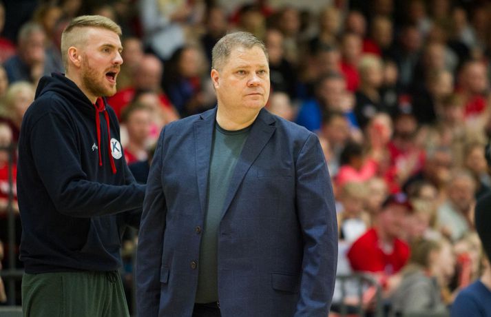 Kári Jónsson var enn og aftur í lykilhlutverki í kvöld og hann uppskar hrós þjálfarans. „Kári er frábær körfuboltamaður. Auðvitað er maður fúll þegar menn eins og hann gera mistök - og hann gerði mistök í kvöld. En þeir eru að djöflast í honum allan leikinn og þetta er því skiljanlegt.“