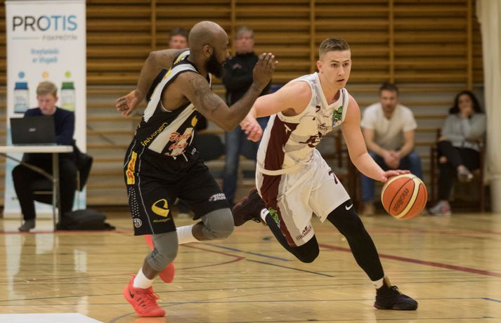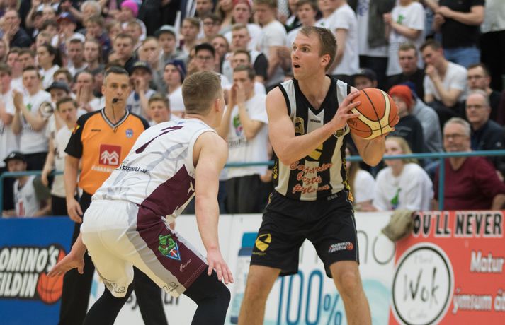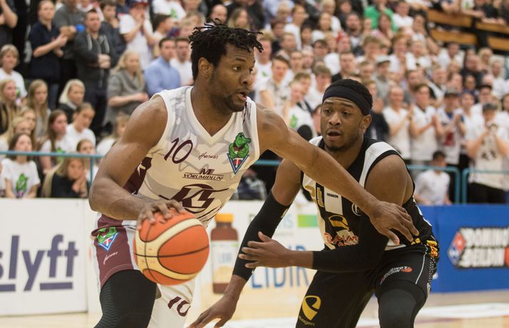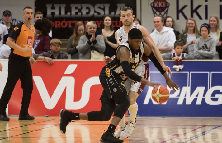 Umfjöllun, viðtöl og myndir: Tindastóll - KR 54-75 | KR skrefinu nær íslandsmeistaratitlinum Hákon Ingi Rafnsson skrifar 20. apríl 2018 22:30 Marus Walker er kominn aftur í KR. vísir/bára dröfn Fyrsti leikur í einvígi Tindastóls og KR, í úrslitakeppni Domino's deildarinnar fór fram í Síkinu í kvöld en hann endaði með sigri KR, 54-75 Fyrsti leikhluti byrjaði af krafti, Sigtryggur Arnar skoraði fyrstu 5 stig heimamanna og Antonio Hester tróð og kom heimamönnum í 7-2 en KR byrjaði leikinn hægt. Gestirnir gerðu svo virkilega vel og komu til baka og voru búnir að minnka muninn í 1 stig um miðjan leikhluta. Liðin voru jöfn út leikhlutann en Pétur Rúnar kom svo heimamönnum 3 stigum yfir undir lok leikhlutans með tveimur vítaskotum, leikhlutinn endaði 17-14. Annar leikhlutinn byrjaði virkilega hægt en um miðjan leikhluta þá duttu KR-ingar í gang og unnu næsta fjögurra mínútna kafla, 4-19 og komust í 11 stiga forystu. Sigtryggur Arnar náði að minnka muninn í 8 stig undir lok leikhlutans, 31-38. Í þriðja leikhlutanum var það sama sagan. Það var lítið sem ekki neitt skorað í fyrri hluta leikhlutans og svo duttu KR-ingar í gang undir lok leikhlutans og náðu að auka forystu sína í 10 stig, 43-53. Í fjórða leikhluta byrjuðu KR-ingarnir af krafti og komu sér í 16 stiga forystu þegar aðeins 1 mínúta var liðin af leikhlutanum. Þessari forystu héldu þeir út leikinn og unnu að lokum 54-75.Af hverju vann KR? Tölfræðin lýgur ekki en KR-ingar voru með mikið betri skot tölfræði en Tindastóll. Þriggja stiga nýting KR var 9/26 (34%) en nýting heimamanna var 6/36 (16%). Leikurinn í kvöld hefði verið virkilega jafn og spennandi ef að bæði liðin hefðu verið að setja niður skotin sín.Hverjir stóðu upp úr? Kristófer Acox var frábær í kvöld en hann var með 10 stig og 9 fráköst.Hvað gekk illa? Bæði lið hittu mjög illa í kvöld og voru heldur ekki að fara vel með boltann en Tindastóll var með 15 tapaða bolta gegn 16 hjá KR.Hvað gerist næst? Næst mætast liðin í DHL höllinni á sunnudaginn og ég hvet alla til að mæta á þann leik. Það myndi styrkja stöðu KR virkilega mikið ef að þeir taka þann leik.Tindastóll-KR 54-75 (17-14, 14-24, 12-15, 11-22) Tindastóll: Sigtryggur Arnar Björnsson 15, Pétur Rúnar Birgisson 14/4 fráköst, Chris Davenport 9/9 fráköst, Axel Kárason 5/4 fráköst, Antonio Hester 4/10 fráköst, Friðrik Þór Stefánsson 3, Hannes Ingi Másson 2, Björgvin Hafþór Ríkharðsson 2.KR: Jón Arnór Stefánsson 13, Brynjar Þór Björnsson 13/4 fráköst, Kristófer Acox 10/9 fráköst, Björn Kristjánsson 10, Pavel Ermolinskij 9/11 fráköst/9 stoðsendingar, Kendall Pollard 8/6 fráköst, Marcus Walker 5/4 fráköst, Helgi Már Magnússon 4/4 fráköst, Darri Hilmarsson 3.Björn KristjánssonVísir/báraFinnur Freyr: Gott að ná fyrsta högginu Finnur, þjálfari KR, var mjög ánægður með sína menn í kvöld. „Það er sterkt að koma hérna í Síkið og vinna fyrsta leik og ná þá fyrsta högginu.“ „Þetta snýst um að vinna þrjá leiki og við erum búnir að ná einum en núna þurfum við að koma grimmir inn í leik tvö á sunnudaginn, það er stutt á milli svo við verðum að hugsa vel um líkama og sál og koma einbeittir í næsta leik.“Pétur Rúnar BirgissonVísir/báraPétur Rúnar: Ýttu okkur út úr okkar leik Pétur Rúnar, leikmaður Tindastóls, var ekki ánægður með leik liðsfélaga sinna í kvöld, en hann var spurður hvað hafði farið úrskeiðis hjá þeim í kvöld. „Það fór næstum því allt úrskeiðis í kvöld, við spiluðum góða vörn, fáum á okkur 75 stig sem er ekki slæmt en sóknarlega þá náðum við ekki að gera neitt og leyfðum þeim að ýta okkur út úr öllu.“ „Við verðum bara að mæta í næsta leik klárir og ekki leyfa þeim að ýta okkur út úr okkar leik.“Kristófer AcoxVísir/báraKristófer: Einn af okkar bestu leikjum hér í vetur Kristófer Acox, leikmaður KR, var virkilega ánægður eftir leikinn í kvöld og var ákveðinn að mæta sterkur í næsta leik. „Ég er mjög sáttur með frammistöðuna hjá öllum og auðvitað gott að byrja seríuna á sigri. Núna erum við einu skrefi nær að stóra titlinum.“ „Það er frábært að koma hér og vinna fyrsta leik en það var einmitt það sem við lögðum upp. Við sýndum einn af okkar besta leik hér í vetur og það er mjög gott að koma aftur í næsta leik vitandi að við erum 1-0 yfir.“Antonio Hester og Kendall PollardVísir/báraIsrael: varnarlega góðir en skelfilegir sóknarlega Israel Martin, þjálfari Tindastóls, var virkilega svekktur með sóknarleik sinna manna í kvöld. „Varnarlega vorum við frábærir, augljóslega vorum við skelfilegir varnarlega en við verðum að finna gott jafnvægi á milli þess að skjóta þristum og spila inn í teig en í kvöld gerðum við ekkert í teignum og við börðumst ekki nóg til að setja niður skotin okkar inn í teignum eða fyrir utan þriggja stiga línuna. Þetta er ekki nóg til að vinna KR.“ Martin var spurður hvort það yrði erfitt að koma til baka eftir þennan leik. „Nei alls ekki, við erum í úrslitum, við verðum tilbúnir í alla leiki.“Sigtryggur Arnar BjörnssonVísir/báraAxel Kárason og Kristófer AcoxVísir/báraKristófer Acox og Helgi Már MagnússonVísir/báraHannes Ingi MássonVísir/báraHelgi Rafn Viggósson og Helgi Már MagnússonVísir/báraPétur Rúnar Birgissonvísir/báraChris Davenport og Darri HilmarssonVísir/báraPétur Rúnar Birgisson og Antonio HesterVísir/báraKendall Pollard og Axel KárasonVísir/báraViðar ÁgústssonVísir/báraLeifur S. GarðarssonVísir/báraSigtryggur Arnar BjörnssonVísir/báraIsreal MartinVísir/báraAntonio Hester var að glíma við meiðsli í leiknum og skoraði aðeins fjögur stigvísir/báraPétur Rúnar Birgisso