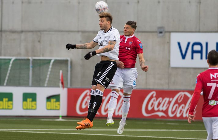 Valsmenn reyndu oft að spila boltanum hátt á Hauk Pál í föstum leikatriðum og á 62. mínutu skapaði það stórhættu. Kristinn Freyr Sigurðsson tók aukaspyrnu langt frá vítateig Rosenborgar þar sem hann fann Hauk Pál. Naglinn á miðjunni vann skallaeinvígið eins og hann gerir oftast, skallaði boltann niður fyrir Tobias Thomsen sem tók boltann á lofti af löngu væri. Boltinn small í stönginni.