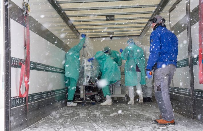 Mikill viðbúnaður við flutning í hylki úr Fossvogi á Hringbraut Kolbeinn Tumi Daðason skrifar 7. apríl 2020 15:05 Sjúklingurinn fluttur í flutningabíl þaðan sem honum var ekið á Landspítalann við Hringbraut. Landspítalinn/Þorkell Á dögunum var sjúklingur með Covid-19 sjúkdóminn í fyrsta skipti fluttur frá gjörgæsludeild Landspítala í Fossvogi til gjörgæsludeildar spítalans við Hringbraut. Frá þessu er greint á vefsíðu Landspítalans. Mikill viðbúnaður var á spítalanum vegna þessa flutnings. Notað var sérstakt einangrunarhylki, sem gjarnan er kallað „húdd“ af fagfólki. Með notkun hylkis af þessu tagi er tryggt að smitaðir einstaklingar smiti ekki aðra við flutning. Enn fremur varnar hylkið því að einstaklingar sem eru veikir fyrir smitist við flutning milli deilda eða stofnana. Sérstaklega er gætt að öryggi sjúklinga við flutningana með þar til gerðum öryggisbúnaði eins og loftflæðis- og loftgæðanemum, festingum á hylkinu við notkun og öryggisbeltum fyrir sjúklinginn. Einnig er öryggi þeirra sem vinna með hylkið tryggt. Húddin uppfylla öryggisstaðla til notkunar á sóttvarnardeildum, í sjúkrabifreiðum, flugvélum og þyrlum. Þorkell Þorkelsson, ljósmyndari Landspítala, skrásetti flutninginn af sínu einstaka innsæi eins og segir á Facebook-síðu Landspítalans. Faraldur kórónuveiru (COVID-19) Landspítalinn Heilbrigðismál Mest lesið Veðurvaktin: Snjókoman rétt að byrja og víða erfið færð Veður Ungur Miðflokksmaður gengst við rasisma og segir af sér Innlent Snjókoman rétt að byrja Innlent Flugmaðurinn sem fórst millilenti oft í Reykjavík Innlent Eldur í blokk við Ljósheima Innlent Bílar út af veginum á Reykjanesbraut Innlent Ráðgjafinn ráðinn í tímabundið starf eftir dýra skreppitúra Innlent Hvatt til varúðar vegna snjóflóðahættu á suðvesturhorninu Innlent Skvísur geti virkað sem hálfgerðir þroskaþjófar Innlent Fjölmargir farþegar fastir í flugvélum á Keflavíkurflugvelli Innlent Fleiri fréttir Kærðu umdeildar framkvæmdir allt of seint Skellt í lás í sundlaugum borgarinnar vegna veðurs Reglur brotnar og þjónusta sem bjóða ætti út Þarf að borga bætur þrátt fyrir breytingar á hlaupahjólinu Hvatt til varúðar vegna snjóflóðahættu á suðvesturhorninu Meiri kvika en í síðasta gosi Eldur í blokk við Ljósheima Flugmaðurinn sem fórst millilenti oft í Reykjavík Halla leiðir krabbameinsráð ráðherra Snjókomumet og umferðaröngþveiti Segir sameiginlegum gildum Norðurlanda ógnað Fjölmargir farþegar fastir í flugvélum á Keflavíkurflugvelli Ungur Miðflokksmaður gengst við rasisma og segir af sér Sturlað ástand og United vettlingar prjónaðir í bílnum Mesta snjódýpt í Reykjavík sem mælst hefur í október Viðbragðsaðilar í mikilli hættu vegna bíla á sumardekkjum Bílar út af veginum á Reykjanesbraut Vill heimila Samkeppniseftirlitinu að ráðast í húsleitir Snjókoman rétt að byrja Píratar berjist gegn „rísandi bylgju lýðskrums og fasisma“ Skvísur geti virkað sem hálfgerðir þroskaþjófar Ráðgjafinn ráðinn í tímabundið starf eftir dýra skreppitúra Misvægi atkvæða bitnar mest á Kraganum Heitavatnslaust á Suðurnesjum og rafmagnslaust víða um land Skreppiferðir í Jysk meðal þess sem ráðgjafi rukkaði fyrir „Ég tel ekki tilefni til að íhuga stöðu mína“ Áhyggjur af lánaframboði og ógnarlangar biðraðir Vara við ferðum á Fagradalsfjall þar sem aðstæður geti orðið hættulegar Kristmundur verður lögreglustjóri á Austurlandi „Vonandi klárast þetta á morgun“ Sjá meira