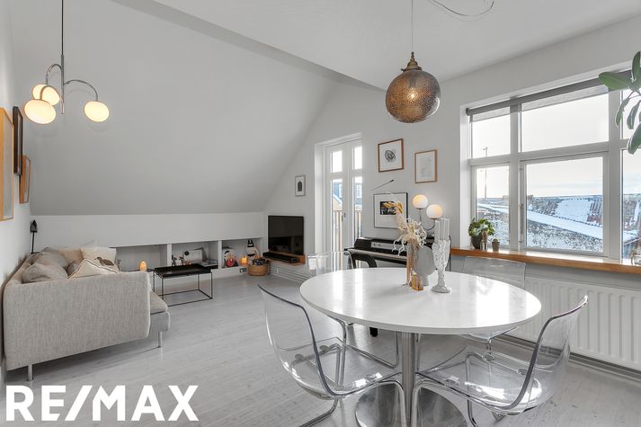 Íbúðin er ein sú vinsælasta á Fasteignavef Vísis í augnablikinu en eigendurnir eru Kaktus Einarsson tónlistarmaður og Alex Bergmann grafískur hönnuður hjá 66°Norður. Uppsett verð er 54.900.000. Suðursvalir eru á gafli hússins með útsýni að Keili og Bessastöðum sem og vestur í bæ. Hér fyrir neðan má sjá nokkrar myndir af íbúðinni. Fasteignaljósmyndun.is Fasteignaljósmyndun.is Fasteignaljósmyndun.is Fasteignaljósmyndun.is Fasteignaljósmyndun.is Fasteignaljósmyndun.is Fasteignaljósmyndun.is