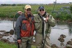 Völundur eða Völli eins og hann var gjarnan kallaður, er einn af þeim veiðimönnum sem festast í minningu þeirra sem fengu þann heiður að kynnast honum. Einn af þeim sem minnast hans er Jón Þór Ólason Formaður SVFR en Völundur var frændi hans. Minningargrein Jóns um Völund er birt hér á Veiðivísi með góðfúslegu leyfi Jón Þórs. Ljóst er að fallinn er frá goðsögn í stangveiði hér á landi. „Stórvinur minn og frændi Völundur Þorsteinn Hermóðsson leiðsegir nú veiðimönnum á veiðilöndunum fyrir handan. Völli var goðsögn í lifanda lífi, einstakt eintak af manneskju hvers skarð verður aldrei fyllt. Ég var þeirrar gæfu aðnjótandi að kynnast Völla á unga aldri og er þeim mun ríkari fyrir vikið. Völli var vinur vina sinna sem alltaf gaf án kröfu um endurgjald og bar hjartað ekki utan á vöðlujakkanum heldur á réttum stað og þess nutu allir er honum kynntust. Drottning íslenskra fallvatna, Laxá í Aðaldal, var hans heimavöllur enda afkomandi stórmenna þegar kemur að laxveiði og náttúruvernd. Völundur og Jón Þór á góðri stund við Laxá Laxá býður enda upp á fallegustu umgjörð veraldar um laxa og menn. Völli vildi öllum vel og var ávallt reiðibúinn að aðstoða og leiðsegja þeim er veiddu höfuðdjásn drottningarinnar, þ.e. Nessvæðið í Laxá. Þegar Völli var ekki að leiðsegja, keyrði hann samt sem áður um ársvæðið og gaf mönnum ráð og leiðbeiningar sem voru ómetanlegar og til þess fallnar að gera upplifun þeirra við paradísina á jörðu að enn frekari ævintýri. Minningarbrotin sem ég á um Völla eru fjársjóður sem mun fylgja mér alla tíð. Völli var að eðlisfari glaður og hláturmildur. Minningarbrotin eru endalaus og veita hjartanu hlýju á þessum sorgartíma. Sögurnar sem unnt er að segja af göðsögninni Völla í Álftanesi eru til þess fallnar að fylla margar bækur. Það verður undarlegt að veiða Drottninguna næsta sumar og eiga ekki von á því að sjá græna Cherokee jeppann stoppa við veiðistaðinn og sjá goðsögnina stíga út, opna hlerann á skottinu, kveikja sér í vindli og bíða eftir því að þú komir og fáir að heyra leiðbeiningar, góða sögu og hjartahlýjan hlátur. Guð almáttugur hefur sett niður punktinn við ævi Völla, en eftir stöndum við sem syrgjum goðsögnina, þakklát fyrir að hafa kynnst þeim ,,þvílíka manni" sem Völli var. Elsku vinur. Ég óska þér góðrar ferðar í sumarlandið og þakka þér fyrir allt sem þú hefur gefið mér. Skarð þitt verður aldrei fyllt. Ég er betri maður vegna þín. Elsku Halla, Steinunn Birna, Viðar og Völli. Ykkar er sorgin mest, því ef maður á mikið, þá missir maður mikið. Guð almáttugur styrki ykkur í sorginni. Fiskur er ég á færi í lífsins hyl, fyrr en varir kraftar mínir dvína. Djarfleg vörn mín dugir ekki til, dauðinn missir aldrei fiska sína. Guð blessi minningu goðsagnarinnar Völundar Þorsteins Hermóðssonar.“