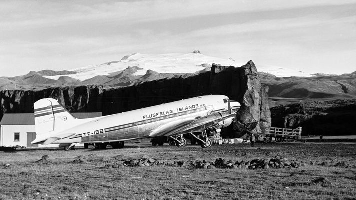 Við sýndum frá því í síðustu viku þegar verið var að flytja Gunnfaxa frá Keflavíkurflugvelli austur í sveitir. Landeigendur Sólheimasands höfðu keypt flugvélina af Þristavinafélaginu til að leysa af gamla flakið sem grotnað hafði niður á sandinum. Þetta líst Flugfélagsbræðrunum Jóni Karli og Snorra Snorrasonum illa á. Ferðamenn flykktust að flugvélinni á Sólheimsandi í fyrradag, þótt búið væri að draga hana fjær gönguleiðinni sem liggur að flaki Varnarliðsflugvélarinnar.Snorri Snorrason „Þessi vél á ekkert erindi þangað. Fyrir utan það að hún hefur sögulegt gildi fyrir Ísland. Var í þjónustu Flugfélags Íslands og Íslendinga í 25 ár, hvorki meira né minna,“ segir Jón Karl í fréttum Sýnar. Faðir þeirra bræðra, Snorri Snorrason flugstjóri, hafði einmitt tekið ljósmyndina af Gunnfaxa á Skógaflugvelli árið 1960. „Við erum búnir að senda erindi til Samgöngusafnsins á Skógum um að þeir taki vélina til varðveislu og til framtíðar. Við teljum að þetta sé slíkur gripur að það megi ekki farga honum,“ segir Snorri. Gunnfaxi í lúpínubreiðu á Sólheimasandi á mánudag. Mýrdalsjökull í baksýn.Snorri Snorrason Það var raunar Eyfellingurinn Ólafur Eggertsson á Þorvaldseyri sem átti frumkvæðið og hafði samband við Jón Karl. „Hann sá vélina renna framhjá á leiðinni austur og hann gat bara ekki hugsað sér að þessi vél færi þarna út á sand. Þetta bara má ekki gerast, sagði hann,“ hefur Jón Karl eftir Ólafi á Þorvaldseyri. Þeir bræður fóru austur á Sólheimasand á mánudag, ræddu við heimamenn og skoðuðu flugvélina. „Já, ferðamenn bara streymdu að henni þótt hún væri langt frá gönguleiðinni.“ En þeir fengu einnig þau svör frá Benedikt Bragasyni, bónda á Ytri-Sólheimum, að hann væri tilbúinn að selja. „Gegn því að við borgum náttúrlega útlagðan kostnað. Og helst vill hann fá aðra vél í staðinn,“ segir Jón Karl. Gunnfaxi á Fagurhólsmýri í Öræfum árið 1956.Snorri Snorrason Þeir sýna okkur gamlar myndir af Gunnfaxa að sækja sauðfé í Öræfasveit. Vegleysur Suðurlands og Suðausturlands þýddu að þristarnir höfðu stórt hlutverk í samgöngusögu Sunnlendinga, Rangæinga og Skaftfellinga, fram eftir síðustu öld, allt frá Hellu á Rangárvöllum og austur á Hornafjörð. Gunnfaxi var nýttur til flutninga á lifandi fé úr Öræfasveit til fjárskipta þegar skera þurfti niður í öðrum landshlutum vegna sauðfjársjúkdóma.Snorri Snorrason „Voru bara uppistaðan í innanlandsfluginu hérna í áratugi. Þannig að við megum ekki fórna henni. Því að ef hún fer út á sand þarna þá er hún bara ónýt eftir árið,“ segir Jón Karl. Þeir hafa ásamt Ólafi Eggertssyni ákveðið að stofna félagið Vinir Gunnfaxa í von um að safnið á Skógum vilji taka við henni. „Við erum svo tilbúnir að hefja söfnun og skila henni í þeirra hendur sýningarhæfri.“ Þeir sjá fyrir sér að Gunnfaxi gæti í fyrstu staðið utanhúss við Skógasafn en framtíðin væri að koma flugvélinni undir þak. „Mér skilst að það þurfi að byggja þarna stóra skemmu. Og þá þarf að hafa hana aðeins stærri fyrir vikið,“ segir Jón Karl. Jón Karl með föður sínum, Snorra Snorrasyni, við Gunnfaxa á Fagurhólsmýri árið 1956.Úr einkasafni En hvað þarf að safna miklu? „Þetta eru einhverjar milljónir,“ segir Snorri. „En milljón í dag er ekki neitt. Þetta eru smáaurar í sjálfu sér. Ef menn taka sig saman,“ segir Jón Karl. „Samtakamátturinn er allt sem þarf,“ segir Snorri. Vængirnir fylgdu með í kaupunum.Sigurjón Ólason „Þessi vél er tilbúin raunverulega til þess að fara um hana höndum. Þrífa hana og mála og bæta það sem á vantar. Setja á hana mótora og annað. Þetta eru smáaurar þegar upp er staðið. Og okkur mun alltaf verða álasað síðar meir ef við ekki gerum eitthvað í þessu núna,“ segir Jón Karl. „Vera stórhuga,“ segir Snorri. DC_3DOCX26KBSækja skjal Svona leit Varnarliðsflugvélin út daginn eftir nauðlendinguna á Sólheimasandi þann 21. nóvember árið 1973.Þórir Kjartansson Svona lítur flugvélarflakið út núna.vísir/vilhelm Fjallað var um áform um stækkun Samgöngusafnsins í þessari frétt fyrir tveimur mánuðum:
