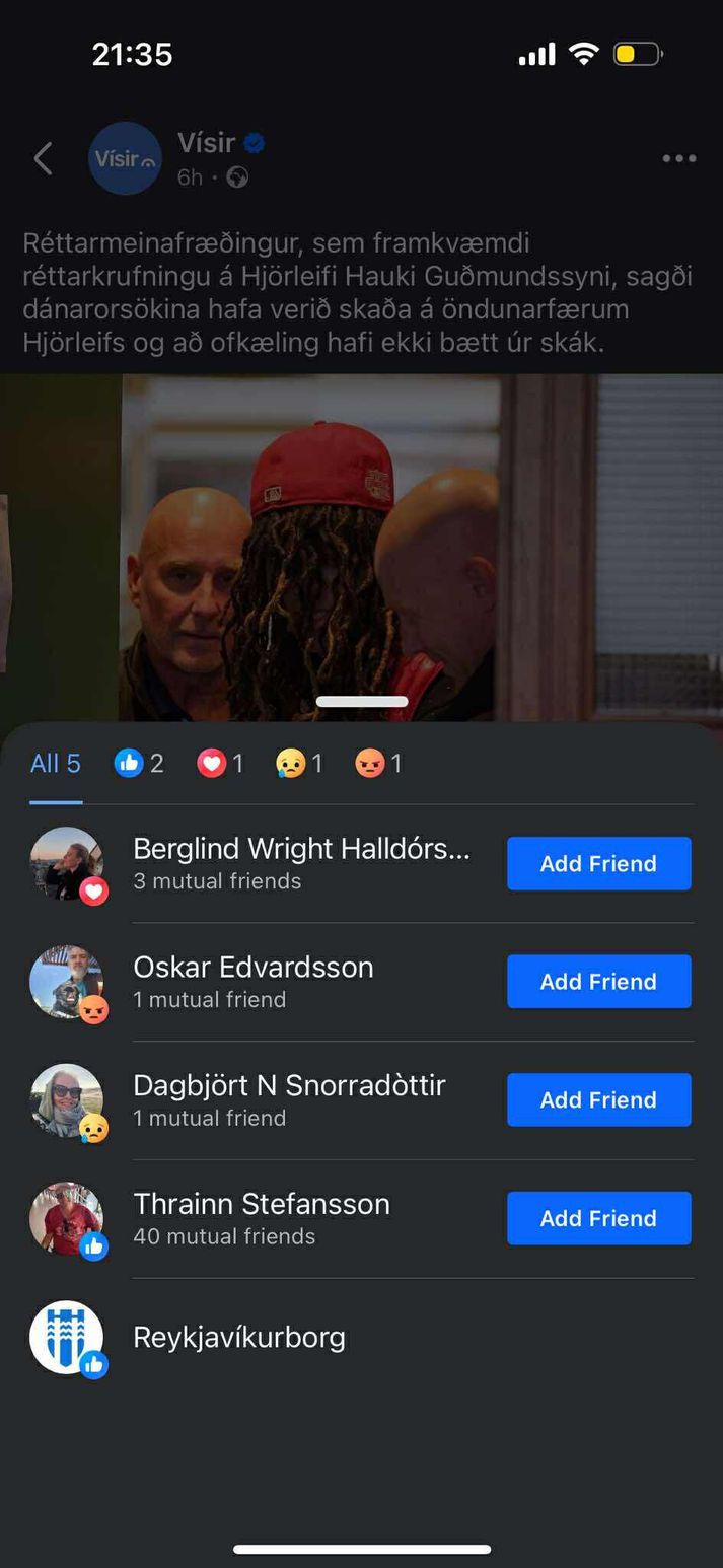 Óheppileg „læk“ Reykjavíkurborgar: „Okkur þykir þetta miður“ Árni Sæberg skrifar 8. október 2025 12:19 Eva Bergþóra Guðbergsdóttir er samskiptastjóri borgarinnar. Skjáskot/Reykjavíkurborg Talsverða athygli vakti í gær þegar opinber Facebook-aðgangur Reykjavíkurborgar smellti svokölluðu „læki“ á frétt um sögulega mikla mælda óánægju með stjórnarandstöðuna. „Lækið“ er ekki einsdæmi og samskiptastjóri borgarinnar segir málið óheppilegt. Vísir greindi í gær frá niðurstöðum skoðanakönnunar, sem bentu til þess að landinn væri ekki ánægður með stjórnarandstöðuna, sem samanstendur af Sjálfstæðisflokki, Framsókn og Miðflokki. Eins og gengur var fréttinni deilt á samfélagsmiðlinum Facebook og þar fékk færslan „læk“ frá Reykjavíkurborg. Glöggir netverjar komu auga á „lækið“Skjáskot Athugulir notendur Facebook bentu Vísi á lækið og Magnea Gná Jóhannsdóttir, borgarfulltrúi Framsóknar, vakti athygli á málinu á Instagram. „Allt „eðlilegt“ við þetta læk Reykjavíkurborgar. Borgin hefur gleymt því að hún er borg allra íbúa líka þeirra sem kjósa ekki ríkisstjórnina,“ sagði hún. Mannleg mistök Eva Bergþóra Guðbergsdóttir, samskiptastjóri Reykjavíkurborgar, segir í samtali við Vísi að um mannleg mistök hafi verið að ræða. Nokkur fjöldi starfsmanna borgarinnar hafi aðgang að Facebook-aðgangi hennar og ekki sé vitað að svo stöddu hver þeirra var að verki í gær. Farið verði yfir ferla í kjölfar málsins. Þá bendir hún á að „lækið“ hafi aðeins fengið að standa í augnablik og starfsmenn hafi brugðist hratt við því. „Ég myndi segja að þetta sé mjög óheppilegt og okkur þykir þetta miður. Ég geri ráð fyrir því að þarna hafi enginn ásetningur verið að baki.“ Ekki í fyrsta skiptið Eva Bergþóra gengst við því að þetta sé ekki í fyrsta skipti sem starfsmaður „lækar“ óvart færslu á Facebook í nafni borgarinnar. Blaðamann rekur til að mynda minni til þess þegar frétt var flutt af skýrslu réttarmeinafræðings við aðalmeðferð í Gufunesmálinu svokallaða í ágúst. Þá smellti Reykjavíkurborg „læki“ á mynd af einum þeirra sem var síðar dæmdur fyrir manndráp í málinu og efnisgreinina „Réttarmeinafræðingur, sem framkvæmdi réttarkrufningu á Hjörleifi Hauki Guðmundssyni, sagði dánarorsökina hafa verið skaða á öndunarfærum Hjörleifs og að ofkæling hafi ekki bætt úr skák.“ Telja verður að mistök hafi verið gerð þegar þessi færsla var „lækuð“ í nafni borgarinnar.Skjáskot Samfélagsmiðlar Reykjavík Borgarstjórn Mest lesið Magga Stína handtekin í nótt af Ísraelsher Innlent Björk styður æskuvinkonu sína sem sætir svívirðingum Innlent Langþreyttur á TikTok áreiti og rasískum orðsendingum skólakrakka Innlent Óheppileg „læk“ Reykjavíkurborgar: „Okkur þykir þetta miður“ Innlent Átján sagt upp í Seljahlíð Innlent Dularfull brotlending nærri Area 51 Erlent „Minnir á saltveðrið mikla“ Innlent Keyrt á vegfaranda í Skeifunni Innlent Takmörk á því hversu langt Ísraelar geti farið til að verja hafnbann Innlent Engan óraði fyrir framhaldinu Erlent Fleiri fréttir Takmörk á því hversu langt Ísraelar geti farið til að verja hafnbann Keyrt á vegfaranda í Skeifunni Óheppileg „læk“ Reykjavíkurborgar: „Okkur þykir þetta miður“ Hafa rætt við ísraelsk stjórnvöld og sett fram kröfur vegna Margrétar Björk styður æskuvinkonu sína sem sætir svívirðingum „Minnir á saltveðrið mikla“ Magga Stína tekin höndum og gular viðvaranir í kortunum Stúlkan komin í leitirnar Bændum verulega brugðið vegna breytinga á búvörulögum Ákærður fyrir stunguárás á Seltjarnarnesi Magga Stína handtekin í nótt af Ísraelsher Átján sagt upp í Seljahlíð Fyrri degi heimsóknar lauk með kvöldverði í forsetahöllinni Sást blóðugur fyrir utan fjölbýlishús Langþreyttur á TikTok áreiti og rasískum orðsendingum skólakrakka „Það er sárt að þurfa að horfa á eftir þeim“ Ekki hlutverk stjórnarandstöðunnar að halda uppi stemmingu Segir réttast að ráðherra dragi drögin í heild sinni til baka Spyr hvort aflífa þurfi sig vegna mjaðmaskipta Þungt símtal bónda í Skagafirði Lögregla lýsir eftir fimmtán ára stúlku Dæmi um að aðstandendur beri fíkniefni í börn á Stuðlum Tóku farsíma af unglingum í Hafnarfirði og millifærðu af reikningum Stofna hreyfingu til undirbúnings íslenskum her Fólk hvatt til að setjast og spjalla á spjallbekknum Diljá hlustaði á Bítið með tárin í augunum Kyngreint nautasæði kemur vel út Samþykkt að kortleggja eignarhald sjávarútvegsfyrirtækja „Þýðir ekki bara að moka yfir hlutina“ Segir stöðuna á sjúkrahúsinu á Akureyri grafalvarlega Sjá meira