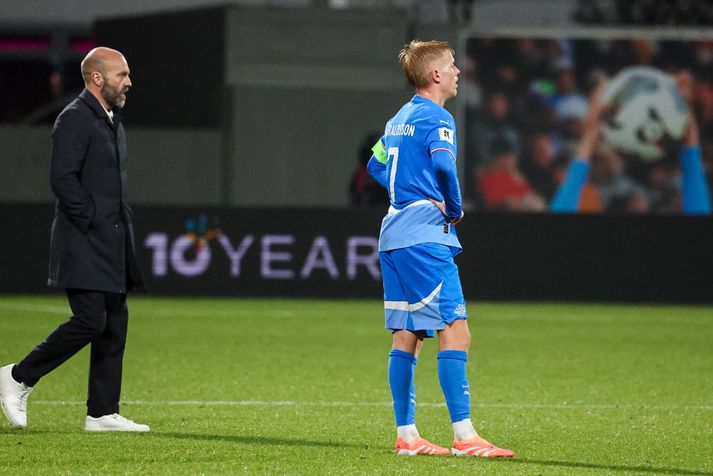 HM 2026 í fótbolta Landslið karla í fótbolta Tengdar fréttir Mbappé kemur ekki til Íslands Kylian Mbappé mun ekki ferðast með félögum sínum til Reykjavíkur á morgun, laugardag, og missir af leiknum við Ísland í undankeppni HM í fótbolta á mánudagskvöld. 10. október 2025 23:09 „Ég held að hann verði að skoða þetta“ Í uppgjörinu á Sýn Sport eftir 5-3 tap Íslands gegn Úkraínu í kvöld fór Lárus Orri Sigurðsson yfir þá ákvörðun Arnars Gunnlaugssonar landsliðsþjálfara að tefla aftur þeim Ísaki Bergmanni Jóhannessyni og Hákoni Arnari Haraldssyni tveimur saman á miðju íslenska liðsins. 10. október 2025 22:38 „Langt síðan ég var svona reiður og svekktur eftir leik“ Hákon Arnar Haraldsson, sem var fyrirliði íslenska karlalandsliðsins í leiknum gegn Úkraínu, segir niðurstöðu kvöldsins svekkjandi. Ísland tapaði 3-5 í miklum markaleik í D-riðli undankeppni HM 2026. Hákon segir að íslenska liðið hefði átt að sýna meiri skynsemi í leiknum. 10. október 2025 21:45 Viðbrögð við leiknum á Twitter - Fáum á okkur 5 mörk úr 0,6 í XG Íslenskir fótboltaáhugamenn höfðu sitthvað að segja um leik Íslands og Úkraínu í undankeppni HM 2026 í fótbolta karla á Laugardalsvelli í kvöld. Áhugaverð tölfræði var dregin fram og punktar um leikinn. 10. október 2025 21:26 Einkunnir íslenska liðsins: Albert fremstur á meðal jafningja Albert Guðmundsson stóð sig best hjá íslenska liðinu þegar liðið laut í lægra haldi fyrir Úkraínu í undankeppni HM 2026 í fótbolta karla á Laugardalsvelli í kvöld. Albert skoraði tvö mörk í leiknum og var þess fyrir utan mikið í boltanum. 10. október 2025 20:58 Mörk Íslands og Úkraínu: Tvö undir lokin frá gestunum Gestirnir frá Úkraínu skoruðu tvö mörk undir lok leiks Íslands við Úkraínu í undankeppni HM í fótbolta á Laugardalsvelli, og komust þannig í 5-3. Mörk leiksins má sjá á Vísi. 10. október 2025 19:11 Mest lesið Vilja fjölskyldusvæði og að áfengi sé ekki selt í sjoppum fyrir börn Sport „Ég held að hann verði að skoða þetta“ Fótbolti Mbappé kemur ekki til Íslands Fótbolti Sæmundur heimsmeistari aftur Sport Myndin af Beckham með Shaq og Yao Ming ekki úr gervigreind Fótbolti Kristófer fjarlægir sig frá Coolbet fjölskyldunni Körfubolti Einkunnir íslenska liðsins: Albert fremstur á meðal jafningja Fótbolti Ein frægasta og ástsælasta stuðningskonan látin Körfubolti „Langt síðan ég var svona reiður og svekktur eftir leik“ Fótbolti Rooney er ósammála Gerrard Enski boltinn Fleiri fréttir Ekki alvarleg meiðsli hjá Mbappé Myndin af Beckham með Shaq og Yao Ming ekki úr gervigreind Rooney er ósammála Gerrard Myndasyrpa eftir nístingssárt tap gegn Úkraínu Mbappé kemur ekki til Íslands „Ég held að hann verði að skoða þetta“ „Langt síðan ég var svona reiður og svekktur eftir leik“ „Svekkjandi að missa af næsta leik“ „Virkilega galið tap“ „Við vorum bara flottir í kvöld“ Baulað á þjálfarann og Svíar á botninum „Mjög barnalegir og gefum mörk“ Einkunnir íslenska liðsins: Albert fremstur á meðal jafningja Uppgjörið: Ísland - Úkraína 3-5 | Óhamingjunni varð allt að vopni Frakkar mæta með fullt hús stiga til Reykjavíkur Reiður yfir mistökum Mikaels: „Negldu þessu helvíti í burtu“ Mörk Íslands og Úkraínu: Tvö undir lokin frá gestunum Ungu strákarnir okkar sóttu stig til Sviss Mikil gleði á Ölveri og Arnar steig á stokk Kraftur Sævars muni smita stuðningsmenn Sævar Atli í byrjunarliðinu í fyrsta skipti í rúm tvö ár Skoraði sigurmarkið gegn Liverpool og svo tvö fyrir landsliðið Haaland og Glasner bestir í september Lykilmenn fjarverandi hjá Úkraínu „Tímarnir hafa einfaldlega breyst“ hjá þýska landsliðinu Ný upplifun fyrir strákana: „Líklega legið þungt á þeim“ „Þetta er mikilvægasti leikurinn í riðlinum“ Isak segist vera tilbúinn í níutíu mínútur Miðasala á leik Íslands og Úkraínu hefst aftur í hádeginu í dag Hallgrímur framlengir við KA Sjá meira