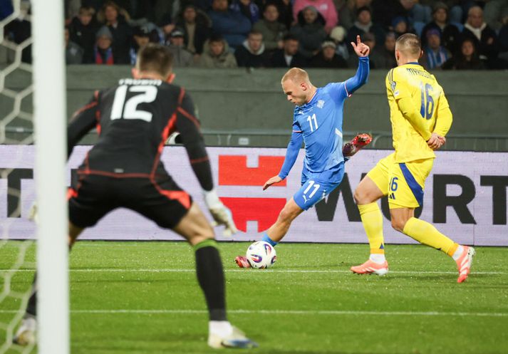 Ljósmyndarinn Anton Brink Hansen var á vellinum og tók myndirnar hér að neðan sem sýna glöggt hve skammt er á milli hláturs og gráturs í fótbolta. Næsti leikur Íslands verður svo á mánudagskvöld þegar stórlið Frakka mætir í Laugardalinn. Stuðningsmenn Íslands létu vel í sér heyra.vísir/Anton Mikael Egill Ellertsson nýtir hér stökkkraftinn og skallar.vísir/Anton Byrjunarlið Íslands gegn Úkraínu.vísir/Anton Logi Tómasson kom inn á í seinni hálfleiknum.vísir/Anton Albert Guðmundsson skoraði tvennu og vildi heyra meira.vísir/Anton Sverrir Ingi Ingason á ferðinni, einbeittur á svip.vísir/Anton Mikael Egill Ellertsson fagnar laglegu marki sínu, sem jafnaði metin í 1-1.vísir/Anton Sævar Atli Magnússon fékk stórt tækifæri í byrjunarliði Íslands.vísir/Anton Jón Dagur Þorsteinsson undirbýr fyrirgjöf.vísir/Anton Albert Guðmundsson átti hörkuskot í þverslá í fyrri hálfleik, áður en hann skoraði tvennuna í seinni hálfleik.vísir/Anton Andri Lucas Guðjohnsen ánægður með markaskorarann Albert. Það var ekki sóknarlega sem Ísland brást í leiknum.vísir/Anton Ísak Bergmann Jóhannesson lét ekki sitt eftir liggja í baráttunni frekar en fyrri daginn.vísir/Anton Arnar Gunnlaugsson kemur skilaboðum til sinna manna.vísir/Anton Úkraínumenn fengu góðan stuðning í kvöld og þökkuðu fyrir hann.vísir/Anton Vonbrigðin leyndu sér ekki hjá Hákoni Arnari Haraldssyni.vísir/Anton Guðlaugur Victor Pálsson í kröppum dansi.vísir/Anton Ísak Bergmann Jóhannesson skellir sér í tæklingu.vísir/Anton