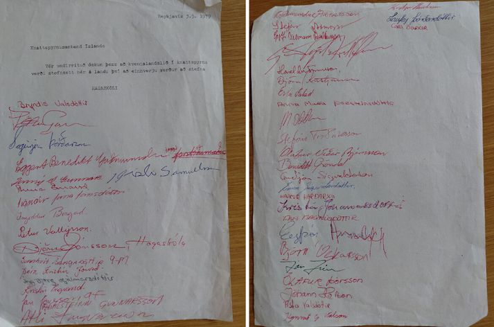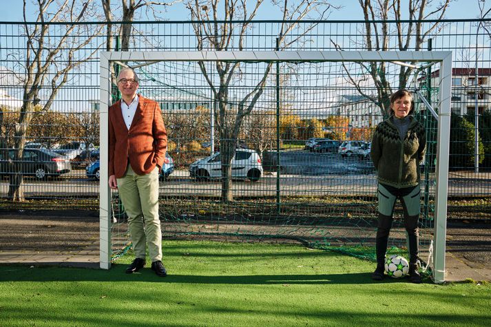 Og þá auðvitað tengt fótboltanum. „Ég gekk fyrst í Öldugötuskóla sem síðar varð að Vesturbæjarskóla og það sem ég man einna helst eftir var að í hverjum frímínútum stóð ég á hliðarlínunni og fylgdist með strákunum spila fótbolta. Engum þeirra datt þó í hug að spyrja hvort ég vildi vera með. Þótt ég stæði með fótbolta sjálf í hendi,“ segir Bryndís Valsdóttir og brosir. Bryndísi þekkja margir fótboltaunnendur. Enda spilaði hún lengi með Val, var ein af fyrstu þremur íslensku konunum sem fór í atvinnumennsku erlendis og eflaust tengja hana enn aðrir við íþróttafréttastarfið á RÚV forðum daga. „Ég fór síðan að spyrja: Má ég vera með? Strákarnir þyrptu sér þá saman og tóku smá fund. Síðan sögðu þeir kannski: Já, ókei þú mátt vera með ef þú ert í marki. Eða ef þú ert í vörninni,“ segir Bryndís og bætir við: „Ég sagði auðvitað já við þessu öllu saman en fór síðan ekkert endilega eftir því sem þeir sögðu.“ Fyrir stuttu rakst Bryndís á gamlan undirskriftalista úr Hagaskóla sem er ansi merkilegt plagg, dagsett 3. maí árið 1979. Undirskriftalistinn er stílaður á Knattspyrnusamband Íslands og þar segir: Vér undirrituð óskum þess að kvennalandslið í knattspyrnu verði stofnsett hér á landi því að einhverju verður að stefna. Síðan stendur: HAGASKÓLI og nöfn þeirra sem rituðu undir. Þar af Bryndís fyrst. Í Áskorun fjöllum við um erfiðu málin en líka allt það jákvæða og góða sem getur byggt okkur upp eða hvatt aðra til dáða. Áskorun fjallar á mannlegan hátt um öll lífsins verkefni. Frumritið af undirskriftalistanum góða sem Bryndís gróf upp á dögunum. Enda Bryndís alin upp við að geyma alltaf frumrit og skila frekar ljósriti. Að einhverju verður að stefna segir meðal annars í áskorun til KSÍ um að stofna kvennalandslið í knattspyrnu. Hagaskólakrakkarnir og stofnun landsliðsins Fjórða nafnið á undirskriftalistanum er nafn Eggerts Benedikts Guðmundssonar sem flestir tengja við viðskiptalífið frekar en íþróttir. Hann var lengi forstjóri HB Granda og N1 en er nú settur forstjóri Hafrannsóknastofnunar. „Ég var ekkert í fótbolta en var formaður málfundafélagsins og í ritstjórn íþróttablaðsins,“ segir Eggert meðal annars. Bæði hann og Bryndís gengu í Melaskóla og síðan Hagaskóla. Þaðan sem þau rifja upp bæði kennara og nemendur úr skólunum en segjast ekkert hafa tengst né þekkst neitt sérstaklega. Fyrr en leiðir mættu í ritstjórn íþróttablaðs Hagaskóla. „Svo ég skýri út það blað þá var ég mikið í hestamennsku á þessum tíma og þess vegna vildi ég halda úti íþróttablaði,“ segir Eggert og Bryndís bætir við: „Já einmitt, það var rosalega mikið skrifað um hesta.“ Þó komst knattspyrnan og aðrar íþróttir líka að. Meira að segja kvennaknattspyrnan en í grein frá því í maí 1979 segir: Kvennaknattspyrna hefur færst mjög í aukana undanfarið. Nú eru 3 mót á ári hverju þ.e. 2 Íslandsmót, innanhúss og utanhúss og Reykjavíkurmót innanhúss. Starfandi eru a.m.k. 12 lið á landinu en 7 þeirra hafa ekki efni á að senda lið til keppni. Komið hefur til tals að velja landslið í kvennaknattspyrnu og hefur KSÍ rætt eitthvað um það innan sinna vébanda en ekki vitum við hvað úr því verður. Hafa nokkrar stúlkur gengist fyrir undirskriftasöfnun um að fá því framgengt og gengur söfnunin vel. En áður en lengra er haldið, skulum við byrja á byrjuninni og átta okkur betur á því hvernig stemningin var fyrir stofnun landsliðs í kvennaknattspyrnu. Og hvað mögulega varð til þess að kvennalandsliðið, sem þó var stofnað árið 1981, var lagt af árið 1987 og ekki endurvakið fyrr en árið 1992. Eggert og Bryndís gengu bæði í Melaskóla og Hagaskóla og um tíma voru þau saman í ritstjórn íþróttablaðsins í Hagaskóla. Þar sem mikið var skrifað um hestamennsku því Eggert stundaði hana af kappi. En stundum þó um fótbolta. Jafnvel kvennaboltann.Vísir/Anton Brink Stór læri og jafnvel lesbíur Bryndís lýsir sjálfri sér þannig að hún hafi í æsku nánast alltaf verið með bolta í hendinni, gengið á milli húsa og spurt hvort einhverjir krakkar væru til í að koma út í fótbolta. „Ég með minn Prins Valíant-koll fékk þó alls kyns spurningar fyrir vikið,“ segir Bryndís og vísar þar til skærustu teiknimyndasöguhetjunnar á þessum tíma. Oft var ég til dæmis spurð: Ertu strákur eða stelpa? Því stelpur voru ekki að spila fótbolta og ef ég man rétt, vorum við þrjár í Vesturbænum sem höfðum áhuga á því. Ég og Jenný vinkona mín og Auður Einars var líka mjög öflug,“ segir Bryndís og gleymir sér eitt augnablik í minningunum. Að spila fótbolta þótti mörgum yfir höfuð ekki sæmandi fyrir stelpur. „Það var sagt að við myndum bara fá stór læri og jafnvel talað að stelpur í fótbolta yrðu lesbíur,“ segir Bryndís og hlær. „Oft fékk maður að heyra að þetta teldist ekki jákvætt. Ekki bara af fullorðnum heldur líka krökkunum sjálfum. Sem sögðu: Abbababb, ertu stelpa í fótbolta?“ Bryndís segir KR í Vesturbænum hafa verið mjög seint til að taka við sér með kvennalið í knattspyrnu. Fyrri til voru Valur, Ármann, FH og jafnvel Breiðablik. „Þetta gerði það að verkum að ég fór að æfa með Val,“ segir Bryndís. Þá 14 ára. „Ég byrjaði á því að mæta á æfingu hjá yngri flokki en var eftir hana spurð hvort ég vildi ekki mæta næst og æfa með meistaraflokknum.“ Þetta var þó alveg heljarinnar mál því til að geta æft, þurfti hún að taka strætó með dótið sitt og handklæði úr Vesturbænum að Valshúsinu, æfa og taka síðan strætó aftur heim í Vesturbæinn. „Sama hvernig viðraði. Því svo sanna