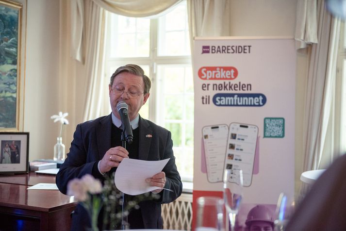 Bare si det byggir á sama grunni og íslenska útgáfan Bara tala sem fyrirtæki, stofnanir og sveitarfélög á Íslandi hafa nýtt til að styðja við íslenskunám fólks með annað móðurmál en íslensku með það að markmiði að stuðla markvisst að aukinni þátttöku þeirra í samfélaginu, auknu sjálfstraust og aðgengi að vinnumarkaði. Í tilkynningu frá Bara tala segir að Högni Kristjánsson, sendiherra Íslands í Noregi og eiginkona hans Ásgerður Magnúsdóttir hafi verið gestgjafar viðburðarins. Högni Kristjánsson sendiherra Íslands í Noregi ávarpaði gesti á mánudaginn. „Chisom Udeze, stofnandi og framkvæmdastjóri Diversify kom fram á viðburðinum og talaði um mikilvægi aðgengis að tungumáli fyrir þátttöku innflytjenda í samfélaginu til að stuðla að jafnrétti. Rita Anson, verkefnastjóri hjá NorBAN og Nordic Ignite kom einnig fram og ræddi tenginguna milli fjölbreytni, nýsköpunar og þróunar lausna á vinnumarkaði,“ segir í tilkynningunni. Jón Gunnar Þórðarson, stofnandi og framkvæmdastjóri Bara tala, kynnti tilurð og framtíðarsýn lausnarinnar Bare si det og sagði frá fyrstu skrefunum í Noregi sem hafa gengið vonum framar. Teymin sem standa að baki Bara tala og Bara si det. „Við erum ótrúlega stolt af því að stíga þetta skref að opna Bare si det og vonumst til að geta stutt við nýbúa og fyrirtæki í Noregi með notendavænu og starfstengdu tungumálanámi,“ er haft eftir Jóni Gunnari. Ráðgjafafyrirtækið FOLKA AS, sem sérhæfir sig í lausnum í mannauðsmálum til fyrirtækja, eru endursöluaðilar á lausninni Bare si det fyrir Noregsmarkað. Jón greindi einnig frá því að Bara tala ehf réði nýlega markaðs og sölustjóra í Noregi. Marcus Øien, sem starfaði áður sem sölu og markaðsstjóri hjá Capeesh, fyrirtæki sem sérhæfði sig í menntatæknilausnum fyrir vinnumarkaðinn tekur við stöðunni. „Hans þekking og reynsla er gríðarlega verðmæt fyrir fyrirtækið okkar á nýjum markaði,” segir Jón Gunnar.