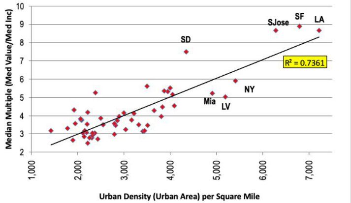 Skipulagsyfirvöld á höfuðborgarsvæðinu hafa verið með linnulausan áróður í meir en áratug um að þétting byggðar sé allra meina bót. Meint gæði þéttingar eru m.a. að hamla gegn hlýnun jarðar (sic), stuðla að breyttum ferðavenjum, skapa betri grunn fyrir Borgarlínu og fleira góðgæti. Þéttingarstefnan sætir sívaxandi gagnrýni úr öllum áttum. Arkitektar, skipulagsfræðingar og verkfræðingar, sem komnir eru á eftirlaun - og því óhræddir við refsivönd yfirvalda - gagnrýna þéttingarstefnuna í æ ríkara mæli, m.a. vegna birtuskerðingar í íbúðum á þéttingarreitum, lélegrar hljóðvistar og umferðartafa. Hækkun húsnæðiskostnaðar Jafn ólíkir aðilar og seðlabankastjóri og stéttarfélagið Efling hafa gagnrýnt þéttingarstefnuna fyrir að stuðla að síhækkandi húsnæðiskostnaði á höfuðborgarsvæðinu. Hér er borin saman hækkun húsnæðiskostnaðar frá 2015 milli landa í EES, auk Sviss og Tyrklands. European property market: Where have housing costs soared the most? | Euronews Ef við sleppum Tyrklandi, sem er utan EES, þá hefur húsnæðiskostnaður hækkað næstmest á Íslandi, eða um 150 %. Meðaltalið fyrir löndin á EES er 53 % hækkun frá 2015. Hin Norðurlöndin liggja öll undir meðaltalinu. Hér má sjá sambandið milli þéttleika byggðar og húsnæðiskostnaðar á þeim 53 borgarsvæðum í BNA með yfir 1 milljón íbúa: Higher Urban Densities Associated with the Worst Housing Affordability | Newgeography.com Niðurstöðurnar eru sláandi: Á lárétta ásnum er þéttleiki byggðar á viðkomandi borgarsvæði (urban area). Á lóðrétta ásnum er hlutfallið milli húsnæðiskostnaðar og meðallauna á viðkomandi borgarsvæði. Fylgnistuðull (correlation coefficient) er 0,858 sem er talin mjög góð fylgni. Niðurstaðan er tölfræðilega marktæk. Vaxtarmörk byggðar á höfuðborgarsvæðinu Bæjaryfirvöld í Kópavogi, Garðabæ og Hafnarfirði hafa greinilega áttað sig á að breyta verður um stefnu og færa út vaxtarmörk byggðar (byggðamörk) í svæðisskipulagi höfuðborgarsvæðisins. Kjarnar og vaxtarmörk á höfuðborgarsvæðinu.Heimild: Svæðisskipulag höfuðborgarsvæðiisins 2015 – 2040. Meirihlutinn í borginni er enn við sama heygarðshornið og leggst gegn því að byggðamörk séu færð út til þess að unnt sé að brjóta nýtt land til uppbyggingar í grannsveitarfélögunum og hefur neitunarvald skv. gildandi skipulagslöggjöf. Fyrir liggur framvarp nokkurra þingmanna um að breyta þessu ákvæði þannig að 5 sveitarfélög af 7 geti samþykkt breytingar á svæðisskipulagi höfuðborgarsvæðisins. Ásdís Kristjánsdóttir, bæjarstjóri í Kópavogi, hefur staðið fremst í flokki þeirra sem vilja færa út vaxtarmörk byggðar. Fyrir rúmu ári skrifaði hún grein í Mbl undir fyrirsögninni „Forsendur sveitarfélaga margbrostnar“, þar sem hún m.a. benti á að húsnæðisskorturinn á höfuðborgarsvæðinu væri að valda fimmfalt meiri raunhækkun á verði fasteigna hér á landi en í nágrannalöndunum. Hún telur að eina leiðin til að ná jafnvægi á húsnæðismarkaðnum á höfuðborgarsvæðinu sé að færa út vaxtarmörkin. Reynsla af vaxtarmörkum erlendis Í 2024 útgáfu skýrslunnar „Demographia International Housing Affordability“ er komist að þeirri niðurstöðu að hátt íbúðarverð sé að miklu leyti afleiðing takmarkana á vexti borgarsvæða. Skoðuð eru dæmi frá 94 fasteignamörkuðum í Ástralíu, Kanada, Kína, Írlandi, Nýja-Sjálandi, Singapore, Bretlandi og BNA. Innan einstakra ríkja er íbúðarverð mjög breytilegt og í skýrslunni er rannsakað hversu hátt það er sem hlutfall af meðallaunum á viðkomandi borgarsvæði. Íbúðarverð er í skýrslunni talið vel viðráðanlegt (affordable) ef hlutfall meðalverðs á íbúð af meðaltekjum heimila (median multiple) er 3,0 eða lægra, og óviðráðanlegur (impossibly unaffordable) ef hlutfallið er 9,0 eða hærra. Meðalverð á íbúð sem hlutfall af meðaltekjum heimila. Heimild: Demographia International Housing Affordability, 2024. Í eftirfarandi töflu má sjá hvernig niðurstöðurnar dreifast á einstök ríki: Viðráðanleiki íbúðarverðs eftir ríkjum. Heimild: Demographia International Housing Affordability, 2024. Íbúðarverð er talið óviðráðanlegt á 11 borgarsvæðum af 94, þ.e. í Hong Kong, Sydney, Melbourne og Adelaide í Ástralíu, Vancouver og Toronto í Kanada og Los Angeles, San Jose, Honolulu, San Fransisco og San Diego í BNA. Í skýrslunni er bent á að lengi vel hafi þróun íbúðarverðs almennt haldist í hendur við launaþróun, en á síðustu áratugum hafi íbúðarverð hækkað mun hraðar en laun í hátekjuríkjum, einkum vegna tilkomu vaxtarmarka á borgarsvæðum. Rannsóknir sýna að landverð er 8-20 sinnum hærra innan en utan vaxtarmarka. Afleiðingin er sú að nú hafa margir íbúar ekki efni á húsnæði á dýrustu borgarsvæðunum. Donald Brash, sem var seðlabankastjóri Nýja-Sjálands 1988 – 2002 og eftir það þingmaður, hefur sagt að húsnæðiskostnaður verði ekki sanngjarn fyrr en landverð á dýrum borgarsvæðum lækki verulega. Í eftirfarandi fréttapistli hans frá því í apríl í fyrra kemur fram að þessi mál hafa verið töluvert í umræðunni þar í landi á síðustu árum og að stjórnvöld ætla að snúa þessari þróun við: DON BRASH: Perhaps The Most Important Speech From The New Government So Far | Frontier Centre For Public Policy Þéttleiki byggðar og umferðartafir Stefnan um þéttingu byggðar á höfuðborgarsvæðinu hefur að miklu leyti verið rökstudd með því að þétting byggðar meðfram samgönguásum Borgarlínu sé nauðsynleg til að auka hlut almenningssamgangna og draga þannig úr notkun fjölskyldubílsins sem er langvinsælasti ferðamátinn. Ef það verði ekki ger