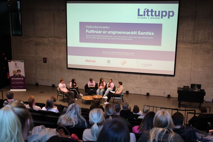 Ungmenni á málþingi um félagslegt netöryggi, miðlalæsi og stafræna borgaravitund sem fór fram í Grósku 22. október síðastliðinn.