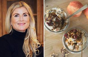 Létt og ljúffengt eplasalat Eitt epli 150 gr grísk jógúrt 1–2 msk döðlusýróp, eða akasíuhunang 2 msk þurrkuð trönuber 2 msk saxaðar valhnetur ½ tsk kanil- valfrjálst Aðferð: Skerðu eplið í þunnar sneiðar með mandolíni eða saxaðu í litla bita. Blandaðu saman grískri jógúrt, sætu og kanil í skál. Settu eplið, trönuber og valhnetur út í jógúrtblönduna og blandaðu varlega Bættu við trönuberjum og valhnetum og blandaðu varlega. Skreyttu með nokkrum valhnetum, trönuberjum og dropa af döðlusýrópi áður en borið er fram. View this post on Instagram A post shared by Kristjana Steingrímsdóttir (@janast)