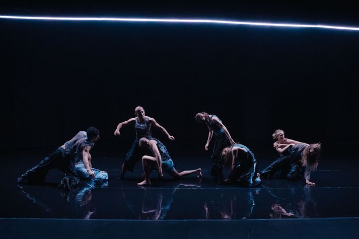 Um er að ræða nokkuð óhefðbundna danssýningu og lýsir höfundurinn henni sem „lifandi dansinnsetningu“. Sýningin byggir jafnframt á myndlistarsýningunni Flóð sem Jón Þór Birgisson, eða Jónsi, sýndi í Hafnarhúsinu í fyrra. Flóðreka er frumsýnd næstkomandi laugardag, 8. nóvember, í Borgarleikhúsinu. Af því tilefni mælti blaðamaður sér mót við höfundana, Jónsa og Aðalheiði, í bakherbergi Borgarleikhússins til að ræða sýninguna, samstarfið og lykt. Þegar tónlistin tók yfir var hinu ýtt til hliðar Blaðamaður hóf viðtalið á að spóla til baka og forvitnast hvernig Flóðreka varð til. Án þess að ætla sér það fór Aðalheiður að hlæja að spurningunni. Ástæðan var að blaðamaður Morgunblaðsins hafði borið upp nákvæmlega sömu spurningu í viðtali fyrr um daginn. Spólum þá enn aftar. Jónsi, þú ert þekktastur fyrir tónlistina en hefur verið að ryðja þér til rúms á vettvangi myndlistar. Hvenær hófst það? „Fyrsta sýningin mín var fyrir þrjátíu árum síðan, ég gerði hana með Jóní Jónsdóttur og Sigrúnu Hrólfsdóttur í Gjörningaklúbbnum. Þær voru með gallerý niðri í Miðbæ og ég gerði sýningu þar sem var mjög fyndin,“ segir Jónsi. Þannig þetta er ekkert nýtt? „Maður gerði alls konar þegar maður var yngri, málaði og teiknaði, en síðan tók tónlistin yfir og þá fór hitt til hliðar. Ég flutti til Los Angeles og hef verið þar í nokkur ár. Þá er maður meira einn og fær meira næði og tíma til að hugsa,“ segir hann um hvað kveikti myndlistarneistann að nýju. Jónsi hefur verið í Los Angeles í drjúga stund.MONA „Aðdragandinn að Flóði var að Ólafur Elíasson var með sýningu í Los Angeles og ég gerði tónlist við eitt af verkunum hans þar. Þá kynntist ég galleríistanum hans, Tönyu Bonakdar, sem var alveg frábær og vildi gera sýningu með mér. Þá byrjaði ég,“ segir Jónsi. Síðan þá hefur hann verið að gera myndlist og tónlist jöfnum höndum. En á sama tíma má segja að öll hans sköpun blandist saman í myndlistinni. „Þetta tengist allt, í innsetningunum mínum reyni ég að hafa áhrif á sem flest skynfæri. Maður smíðar eitthvað fyrir augun en er með hljóð og lykt líka,“ segir hann. Lærði að þefa við ilmvatnsgerðina Jónsi stofnaði listasamsteypuna Fischersund með systrum sínum, Lilju, Ingibjörgu og Sigurrós, árið 2017 en þar blandast ilmvatnsgerð við mynd- og tónlist. Aftur á móti hefur Jónsi verið að „ilmvatnast“ í sextán ár og bruggar eigin ilmvötn niðri í kjallara í þar sem hann er með þúsundir lyktarsameinda og olía. Systkinin fjögur, Jónsi, Sigurrós, Ingibjörg og Lilja. „Síðan mælir maður með vigt, blandar saman með pípettum og skrifar niður uppskriftir. Þetta eru bara uppskriftir og formúlur,“ segir Jónsi um ilmvatnsgerðina. „Þetta er erfiðasti skóli sem ég hef farið í. Það er svo erfitt að fá vitneskju um lyktir og fræðast um þetta,“ bætir hann við. „Verðurðu aldrei þreyttur í nefinu eða færð höfuðverk af of mikilli lykt?“ spyr Aðalheiður þá. „Nei, ég lærði að þefa. Maður má alls ekki þefa svona,“ segir hann og hnussar af áfergju. „Ég anda eins og hundur með stuttum andardrætti. Þetta er allt í lagi ef maður ofkeyrir ekki nefið og andar of mikið.“ Lyktin í sýningunni tengist sjónum og er unnin upp úr þanglykt. Lyktin er hluti af sýningunni. Er þessu sprautað? „Sprautað inn í fólk,“ segir Jónsi í gríni en bætir svo við að það séu notaðar þartilgerðar lyktardreifingarvélar sem dreifi lyktinni um rýmið. Eru ólíkar lyktir? „Nei, það er bara ein lykt,“ segir Jónsi. „Ein lykt sem var í Flóði sem heitir Flóð,“ bætir Aðalheiður við. „Þá er þetta blanda af svona þrjátíu olíum, lyktarsameindum og alls konar öðru dóti. Ég setti þang í alkahól í mánuð til að fanga lyktina af því í þanglausn. Olían sjálf er mjög sölt, falleg og kolsvört,“ segir Jónsi um sjávarkennda lyktina í sýningunni. Hljóð, lykt, ljós og dans. Dansarar gæddu flóðið lífi Myndlistarsýningin Flóð var sýnd í Hafnarhúsinu frá júní til september í fyrra og samanstóð hún af fjórum verkum í ólíkum sölum hússins. „Síðan kemur þú og dansar,“ segir Jónsi og beinir orðum sínum að Aðalheiði. „Við gerðum tilraun til að setja dansinn inn í þennan heim þar sem er mikið myrkur og mikið ljós,“ segir Aðalheiður. Öldugangur ólgandi úthafa rís og hnígur í brjósti mannsins.Björgvin Sigurðarson Dansflokkurinn var með hálftíma innsetningu inni í einu sýningarrými Flóðs þann 12. desember síðastliðinn sem má lýsa sem eins konar prótótýpu af Flóðreka. „Mér fannst mjög gaman að sjá það. Ég vissi ekkert við hverju maður átti að búast,“ bætir Jónsi við. „Ég var þarna til hliðar, faldi mig inni í salnum.“ „Núna er þetta orðið að klukkutíma sýningu þannig það er meiri tónlist og meira prógrammerað ljós,“ segir Aðalheiður. Þannig blandist saman ákveðinn kjarni úr upprunalegu tilrauninni við nýjar hugmyndir og tónlist. Fjarlægðin flæki ekkert samstarfið Aðalheiður og Jónsi eru vanalega staðsett sitt hvorum megin á hnettinum, hún í Reykjavík og hann í Los Angeles. Fjarlægðin flækir þó ekki samstarfið enda eru þau yfirleitt að vinna hvort í sínu horni. Dansinn dunar í Flóðreka. „Það er þetta með internetið,“ segir Aðalheiður og bætir við: „Öðru hverju erum við í bandi og svo erum við bara að vinna.“ Fyrirkomulagið sé yfirleitt þannig að Jónsi sendi tónlist til Íslands sem Aðalheiður útfærir svo með dönsurum. Síðan kom tæknimaður Jónsa sérstaklega til landsins til að setja upp ljósin. „Svo erum við ekkert að vinna núna í viku, akkúra