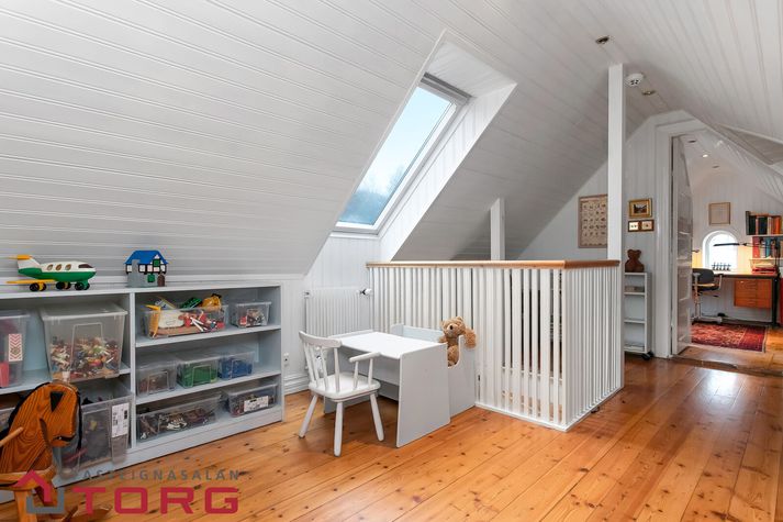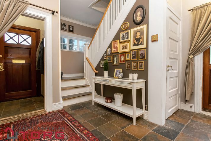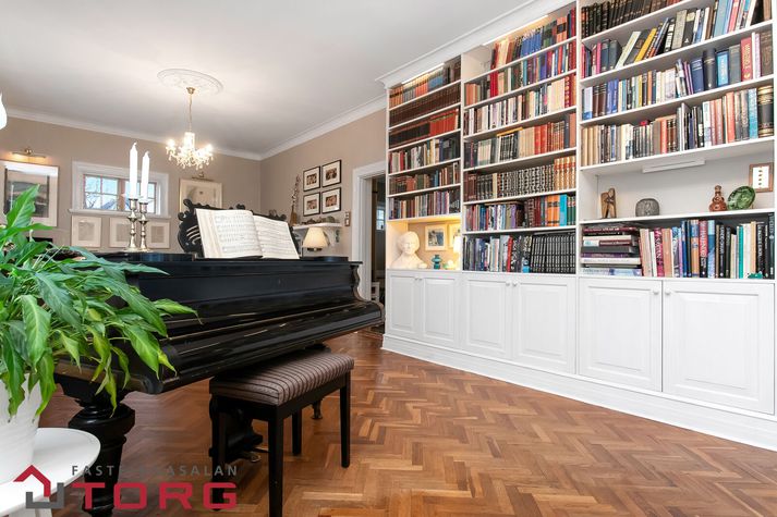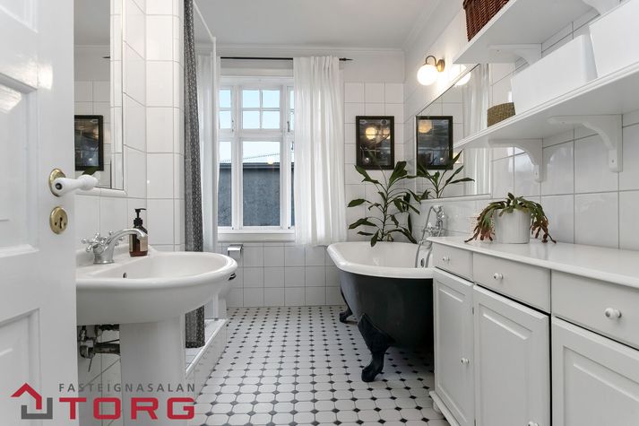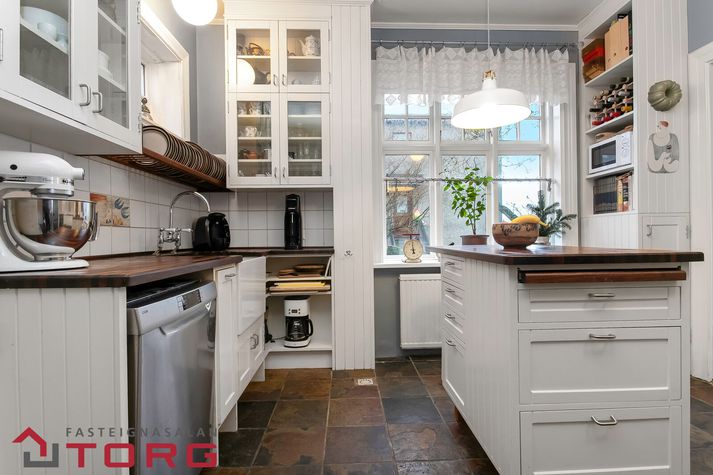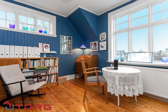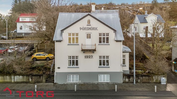 Húsið vekur athygli fyrir stærð sína og staðsetningu við lækinn, en ekki síst vegna stórra stafa á framhliðinni sem sýna bæði nafn þess og byggingarár. Gengið er upp steyptar tröppur inn á aðalhæð hússins, þar sem rúmgott hol með flísum á gólfi tekur á móti gestum. Stofa og borðstofa eru í opnu, samliggjandi rými með gegnheilu parketi í síldarbeinamynstri á gólfi. Franskir gluggar, gólflistar og rósettur gefa húsinu sjarmerandi og fágað yfirbragð. Eldhúsið er opið við borðstofu, prýtt hvítri sérsmíðaðri innréttingu með góðu skápaplássi og borðplötu úr mahogny-við og náttúruflísum á gólfi. Efri hæðin skiptist í rúmgott hjónaherbergi með fataherbergi innaf, barnaherbergi og flísalagt baðherbergi með baðkari. Á rishæðinni er sjónvarpshol með gluggum á tvo vegu og svefnherbergi, auk möguleika á öðru herbergi. Í kjallara er rúmgott hol með skápum, stór stofa með herbergi innaf, baðherbergi með sturtuklefa og stór geymsla. Nánari upplýsingar um eignina má nálgast á fasteignavef Vísis.