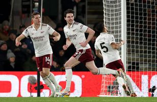 Arsenal sótti þrjú stig á suðurströndina í ensku úrvalsdeildinni í dag þrátt fyrir martraðarbyrjun á móti Bournemouth. Arsenal vann leikinn 3-2 og er þar með komið með sex stiga forskot á toppnum en Manchester City getur reyndar minnkað það í fjögur stig á morgun. Declan Rice missti af síðasta leik vegna meiðsla en var heldur betur mættur aftur í slaginn í kvöld. Rice skoraði tvívegis með sautján mínútna millibili í seinni hálfleiknum og kom Arsenal þá í 3-1. Bournemouth minnkaði muninn fimm mínútum síðar og það var því spenna í leiknum allt til leiksloka. Gabriel var að koma aftur inn í byrjunarliðið hjá Arsenal eftir meiðsli og hann var mikið í sviðsljósinu í upphafi leiks. Fyrst gaf hann Bournemouth mark á silfurfati með hryllilegri sendingu beint á Evanilson sem þakkaði fyrir sig og kom heimamönnum í 1-0 á 10. mínútu. Það tók franska miðvörðinn þó bara sex mínútur að bæta fyrir mistökin því hann jafnaði metin á 16. mínútu þegar hann fylgdi á eftir skoti Gabriel Martinelli. Bournemouth pressaði Arsenal og lét toppliðið heldur betur hafa fyrir hlutunum, sérstaklega í fyrri hálfleiknum. Þannig var staðan þar til að Rice kom Arsenal yfir í 2-1 á 54. mínútu eftir sendingu frá Martin Ödegaard en Norðmaðurinn átti líka mikinn þátt í hinu marki Rice á 71. mínútu sem enski miðjumaðurinn skoraði eftir sendingu frá varamanninum Bukayo Saka. Þá héldu flestir að þetta væri komið en varamaðurinn Eli Junior Kroupi minnkaði muninn í 3-2 með frábæru skoti aðeins sex mínútum síðar. Arsenal náði að stýra mikilvægum sigri í höfn og nú er pressan á Manchester City í stórleiknum á móti Chelsea á morgun.