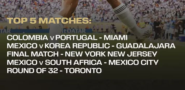 Fyrstu umferð umsókna um miða stóð yfir í 33 daga og lauk í dag. FIFA greindi frá svimandi háum tölum á heimasíðu sinni. Um er að ræða metaðsókn í miða, enda er 48 þjóða heimsmeistaramótið í ár stærra en nokkru sinni fyrr. Umsóknir bárust frá öllum 211 þjóðunum sem eiga aðild að FIFA en fyrir utan gestgjafaþjóðirnar Bandaríkin, Kanada og Mexíkó voru flestar umsóknir frá Þýskalandi, Englandi, Brasilíu, Spáni, Portúgal, Argentínu og Kólumbíu. Vinsælustu leikirnir á HM. FIFA Vinsælasti leikurinn er leikur Kólumbíu og Portúgal þann 27. júní í Miami en á topp fimm listanum voru líka leikir Mexíkó og S-Kóreu þann 18. júní, úrslitaleikurinn í New Jersey þann 19. júlí, opnunarleikurinn milli Mexíkó og S-Afríku þann 11. júní og 32-liða úrslitaleikurinn í Toronto í Kanada þann 2. júlí. Miðasölunni er þó ekki alveg lokið og enn er hægt að sækja um miða á heimasíðu FIFA. FIFA hefur verið töluvert gagnrýnt fyrir hátt miðaverð á HM en forsetinn Gianni Infantino hefur svarað þeirri gagnrýni með því að benda á að ágóði miðasölunnar renni til aðildasambandanna og haldi í raun fótboltanum á heimsvísu á lífi. Í tilkynningu FIFA í dag segir að rúmlega níutíu prósent miðasöluágóðans muni renna til knattspyrnusambandanna.