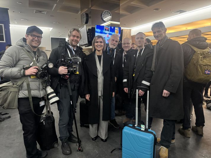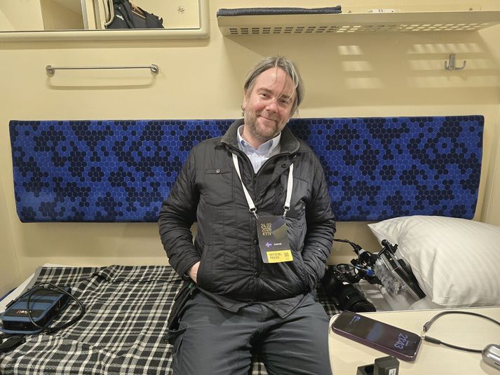 „Er það?“ sagði ég í staðinn. Fullur efasemda. Það fyrsta sem ég hugsaði var hvað þetta yrði hræðilegt ferðalag. Það ætti hreinlega eftir að sökka. Ég hafði einnig áhyggjur af því hvað maður myndi græða á ferð eins og þessari, þar sem maður yrði að mestu á hlaupum milli blaðamannafunda og viðburða. Ég er þó sem betur fer ekki það heimskur og latur að segja nei, enda hefði það verið fáránlegt. Sunna Sæmundsdóttir varafréttastjóri, sem sagði mér að til boða stæði að heimsækja Kænugarð í för með sendinefnd forsætisráðherra og bauð mér að fara, hafði orð á því daginn eftir að viðbrögð mín hefðu verið ákveðin vonbrigði. Önnur samstarfskona mín hafði reyndar orð á því að þetta hefðu verið mjög „Sammaleg“ viðbrögð. Ég veit ekki alveg hvað mér finnst um það. Það verður þó að segjast, að þessar vangaveltur eða áhyggjur áttu að miklu leyti rétt á sér. Þetta var MIKIÐ ferðalag en það var alls ekki slæmt. Mikið ferðalag og fjórtán tímar á hlaupum Í rauninni stóð ferðalagið yfir í rétt rúma þrjá sólarhringa en við vörðum þó ekki nema um fjórtán tímum á hlaupum um Kænugarð. Þar hjálpaði verulega að hópurinn var skipaður góðu fólki í alla staði. Með mér fór Bjarni Einarsson, sem er tökumaður og algjört gull af manni. Þá voru einnig blaðamenn, tökumaður og ljósmyndari frá Ríkisútvarpinu og Morgunblaðinu og fleiri topp menn. Þetta er hópurinn sem ég og Bjarni ferðuðumst með til Póllands og Kænugarðs. Frá vinstri: Eyþór Árnason ljósmyndari Morgunblaðsins, ég, Sölvi Andrason tökumaður hjá RÚV, Sighvatur Arnmundsson upplýsinafulltrúi forsætisráðuneytisins, Björn Malmquist fréttamaður RÚV, Karl Blöndal aðstoðarritstjóri Morgunblaðisins og Bjarni Einarsson, tökumaður hjá Sýn. Við byrjuðum á því að hittast á flugvellinum í Keflavík um miðnætti á sunnudagskvöldi en þaðan áttum við bókað flug með WizzAir til Varsjár. Þar mættum við í sendiráð Íslands í Varsjá, þar sem tekið var á móti okkur með þessari dýrðarinnar heimabökuðu köku. Eftir smá bið í sendiráðinu hoppuðum við upp í þessa fínustu partírútu og í tæplega fjögurra klukkustunda rúnt til bæjarins Przemyśl, (sem mér er algerlega ómögulegt að læra að bera rétt fram) sem er nærri landamærum Póllands og Úkraínu. Þar þurftum við reyndar að bíða í þó nokkra klukkutíma eftir lestinni til Úkraínu og var tímanum varið í allskonar spjall og göngutúra um bæinn, þar sem menn voru mismikið týndir. Hugrekkishraðlestin Úkraínumenn kalla lestina til Kænugarðs „Hugrekkishraðlestina“.Vísir/Sammi Lestin kom þó á endanum og tóku tvær yndislegar konur, sem töluðu ekki stakt orð á ensku, á móti íslenska hópnum og komum við okkur fyrir í tveimur lestarvögnum í „Hugrekkishraðlestin,“ eins og Úkraínumenn kalla hana. Enginn flýgur til Úkraínu þessa dagana, af skiljanlegum ástæðum, og er lest þessi mjög vinsæll ferðamáti fyrir þá sem þurfa að fara til Kænugarðs, og sá eini fyrir utan það að keyra. Þessa tilteknu nótt fóru að minnsta kosti átta þjóðarleiðtogar og háttsettir embættismenn frá Evrópusambandinu frá Póllandi til Úkraínu í þremur mismunandi lestum Áður en við fórum um borð í lestina þurftum við þó að gangast sprengjuleit. Það leiðinlega við þetta ferðalag var að það var farið að nóttu til. Á rúntinum til landamæranna hafði maður gott tækifæri til að virða umhverfið fyrir sér, eins og það að skoða herstöð nærri landamærunum þar sem við sáum fyrstu ummerkin um stríðsástandið í Úkraínu, vörubíla sem notaðir voru til að flytja hergögn til Úkraínu og Patriot-loftvarnarkerfi nærri landamærunum. Brynvarðir bílar á leið til Úkraínu.Vísir/Sammi Það gafst lítið tækifæri til þess að horfa í kringum sig í Úkraínu, hvorki í lestarferðunum tveimur eða í Kænugarði. Í lestinni var alltaf myrkur fyrir utan og í Kænugarði var dagskráin frekar stíf. Þegar við fórum um borð í lestina í fyrsta sinn var nærri því sólarhringur liðinn af ferðalagi okkar og við stóðum frammi fyrir um níu klukkutíma lestarferð. Hún varð reyndar aðeins styttri þar sem nokkrar tafir höfðu orðið á ferðalaginu og virðist sem að stjórnendur lestarinnar hafi gefið í til að vinna upp tapaðan tíma. Ég hafði lítið sofið þegar í lestina var komið. Maður hafði náð litlum lúrum í bílnum en það er óhætt að segja að maður hafi hvílst tiltölulega lítið. Í lestinni gekk ekkert allt of vel að sofa en það hafðist þó í einhverja klukkutíma. Gífurleg öryggisgæsla Þegar ég og Bjarni vöknuðum eldsnemma á þriðjudeginum var stutt í komuna til Kænugarðs. Dagurinn hófst því á miklum hraða og hélt hraðinn sér nánast samfleytt út allan daginn. Utanríkisráðherra Úkraínu tók á móti okkur á lestarpallinum. Mig grunar reyndar að hann hafi aðallega verið þarna til að hitta Kristrúnu Frostadóttur, forsætisráðherra, og var stutt móttökuathöfn haldin á staðnum. Strax í kjölfarið var okkur smalað upp í bílalest og við flutt gegnum Kænugarð. Fyrir utan hergögnin í Póllandi fékk maður þarna fyrst að sjá að Úkraína væri í stríði og þótti mér þessi ferð nokkuð áhrifamikil. Öryggisgæslan í Kænugarði var gífurleg og þá mátti einnig sjá ónýta skriðdreka og sjálfsprengidróna á götum borgarinnar. Einnig sá ég minnisvarða en það var sérstaklega minningarmúrinn svokallaði sem vakti athygli mína. Það er um 120 metra langur veggur sem þakinn er þúsundum ljósmynda af fólki sem hefur dáið við að verja Úkraínu. Myndunum fylgja oftar en ekki upplýsingar um fólkið. Mannskætt umsátur Upphaf þes