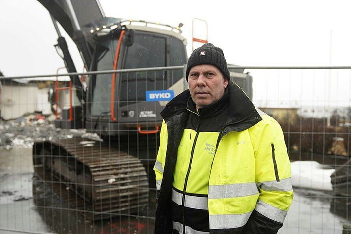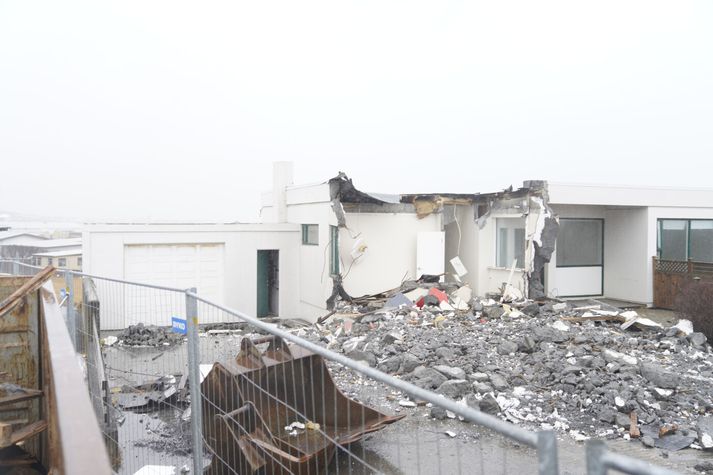Verktakar Jóns og Margeirs hófust handa við niðurrif þriggja húsa í bænum en fyrirtækið varð hlutskarpast í útboði um niðurrif fyrstu sex húsanna sem rifin verða. Þeir standa auk þess í sprunguviðgerðum í bænum, meðal annars við íþróttahúsið þar sem var ansi stór sprunga, sem margir kannast við af fréttamyndum. Markmiðið er að fækka svæðum í bænum sem eru afgirt og lokuð. Erfitt að sjá á eftir heimilum Ásrún Helga Kristinsdóttir, forseti bæjarstjórnar Grindavíkur, segir erfitt að sjá á eftir heimilum fólks í niðurrif. Húsin geymi margar minningar en Grindvíkingar hafi ákveðið að líta á niðurrifið sem hluta af endurreisn bæjarins. Grindavíkurbær haldi utan um útboð vegna niðurrifsins og bæjarbúar sæki um niðurrif til bæjarins. Sú leið hafi verið talin skilvirkust. „Þetta er hluti af stórri og markvissri aðgerðaáætlun, til þess að gera þessi svæði örugg.“ Mikilvæg skref Starf skólastjóra í grunnskóla bæjarins hefur verið auglýst, kosið verður til bæjarstjórnar bæjarins í vor og matvöruverslun verður opnuð í bænum á næstu dögum. Ásrún segir öll slík lítil skref skipta máli við endurreisn Grindavíkur. „Við þurfum að auka þjónustu í bænum og mér finnst við hafa sýnt mikinn baráttuhug, Grindvíkingar. Þetta eru gríðarlega mikilvæg skref.“ Jón Gunnar Margeirsson, eigandi Jóns og Margeirs.Vísir/Lýður Valberg Niðurrif í Grindavík er hafið.Vísir/Lýður Valberg Húsin varða jöfnuð við jörðu.Vísir/Lýður Valberg