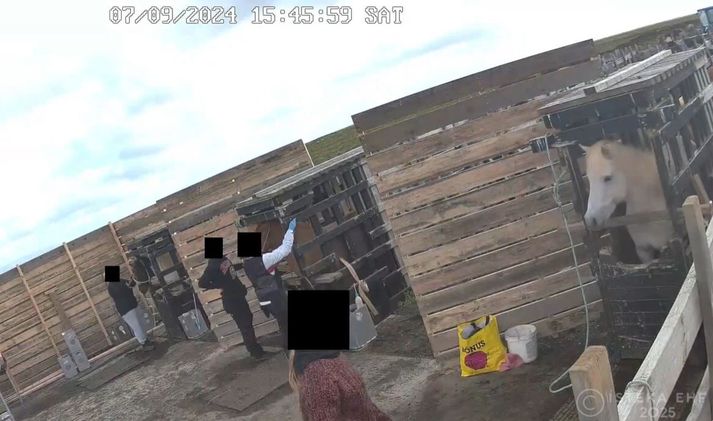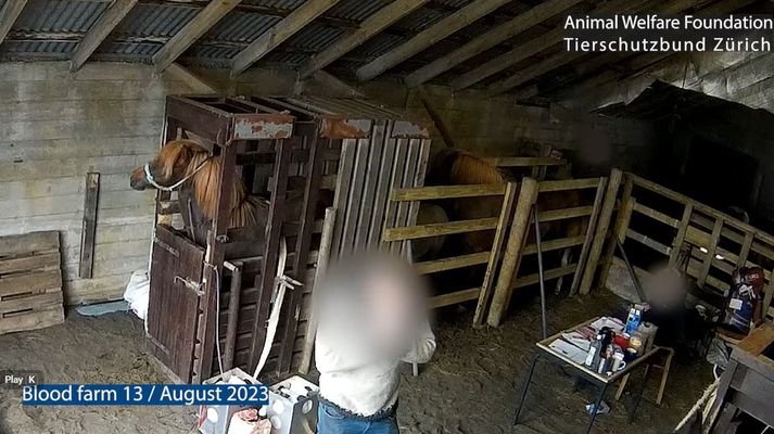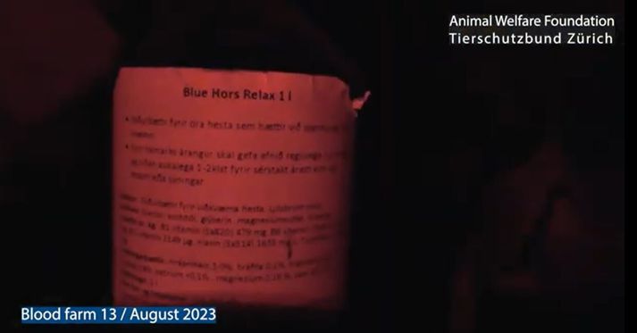 Úr myndefni AWF sem tekið var með földum myndavélum á okkar bæ. Þulur segir að deyfandi efni séu notuð í blóðtökunni á merarnar, sem hvergi kemur fram í myndefninu hjá samtökunum og er alls ekki gert. Var þulurinn þá að vitna í bætiefni sem notað var til meðferðar við magasári á reiðhryssu sem við eigum. Má þess geta að hryssan hentaði ekki til reiðar vegna þessa og er kominn í folaldseign og blóðtöku. Hryssan heldur nú mun betur holdum og hefur ekki þurft neina meðferð síðan.