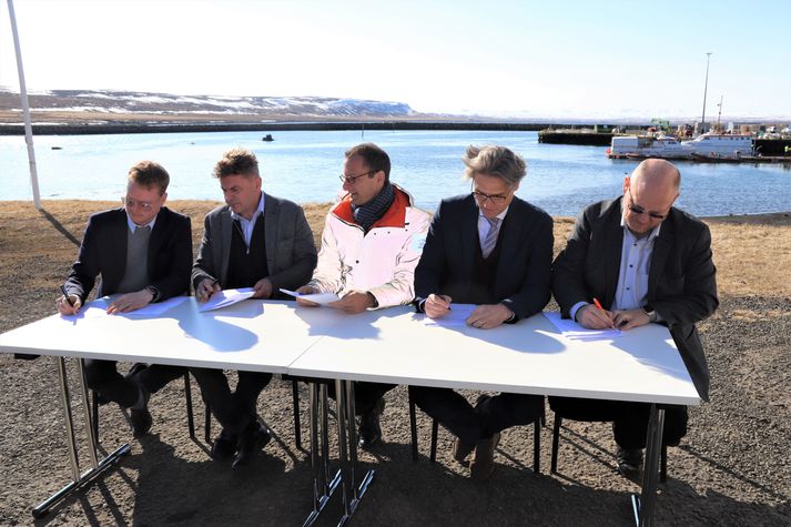 Vinna áfram að alþjóðahöfn og iðnaðarsvæði í Finnafirði Kristján Már Unnarsson skrifar 7. apríl 2026 21:21 Robert Howe, forstjóri Bremenports, og Lars Stimmler, yfirmaður alþjóðaverkefna Bremenports. Sigurjón Ólason Fulltrúar þýska félagsins Bremenports eru enn áhugasamir um uppbyggingu alþjóðahafnar og iðnaðarsvæðis í Finnafirði við Langanes og segja aðstæður þar ákjósanlegar. Þetta kom fram á íbúafundi á Þórshöfn í síðustu viku en Þjóðverjarnir nýttu einnig Íslandsheimsóknina til að funda með fulltrúum forsætisráðuneytis. Í kvöldfréttum Sýnar var rifjað upp að aldarfjórðungur er frá því stórskipahöfn í Gunnólfsvík fór fyrst inn á aðalskipulag. Fyrir tólf árum var ritað undir samstarfsyfirlýsingu í Ráðherrabústaðnum við Bremenports um að hefja rannsóknir vegna hafnargerðar. Fyrir sjö árum var á hafnarbakkanum á Þórshöfn ritað undir samning um stofnun þróunarfélags Finnafjarðarhafnar. Frá Þórshöfn á Langanesi í apríl 2019. Fulltrúar Langanesbyggðar, Vopnafjarðarhrepps, þýska hafnarfélagsins Bremenports og verkfræðistofunnar Eflu undirrituðu þá samning um stofnun þróunarfélags um uppbyggingu alþjóðlegrar stórskipahafnar í Finnafirði.Efla Lítið hefur gerst síðan. Fyrir þremur árum sagði fulltrúi Bremenports Finnafjörð fastan í þagnarmúr þáverandi ríkisstjórnar.Í síðustu viku buðu Langanesbyggð og Vopnafjarðarhreppur til sameiginlegs íbúafundar á Þórshöfn með fulltrúum Bremenports um stöðu málsins. Verkefnið er enn lifandi, eins og heyra má hér í frétt Sýnar: Upphaflegar hugmyndir um risahöfn vegna siglinga um Íshafið eða olíuhöfn eru þó ekki lengur í umræðunni. Núna er viðskiptahugmyndin sú að byrja á vindorkuveri. Höfnin kæmi svo í áföngum í framhaldinu. Umhverfismat er í gangi fyrir tvær vindmyllur á Sauðaneshálsi sem þýska fyrirtækið WPD hyggst reisa í tilraunaskyni til að undirbúa allt að 500 megavatta raforkuver. Orkan yrði nýtt til framleiðslu vistvæns rafeldsneytis fyrir skip. Hliðarverkefni yrði fiskeldisstöð á landi. Grafísk mynd af tveimur vindmyllum sem áformað er koma upp í tilraunaskyni á Sauðaneshálsi ofan Þórshafnar.wpd Ísland Forstjóri Bremenports, Robert Howe, og Lars Stemmler, yfirmaður alþjóðamála fyrirtækisins, nýttu Íslandsheimsóknina einnig til fundar í forsætisráðuneytinu með verkefnastjóra stórfjárfestinga, Karli Guðmundssyni. Einnig sat fundinn sérfræðingur á skrifstofu samhæfingar í ráðuneytinu. „Á fundinum voru stjórnvöld upplýst um stöðu málsins og sagt var frá íbúafundi í Langanesbyggð. Á fundinum kom fram að stjórnvöld munu áfram eiga samtöl um málið við sveitarfélög og þróunaraðila um þá þætti sem snúa að stjórnvöldum,“ segir Sighvatur Arnmundsson, upplýsingafulltrúi forsætisráðuneytis, spurður um fundinn í ráðuneytinu. Frá íbúafundinum á Þórshöfn í síðustu viku. Frá vinstri: Íris Edda Jónsdóttir, sveitarstjóri Vopnafjarðar, Hafsteinn Helgason, sviðsstjóri viðskiptaþróunar hjá Eflu, Robert Howe, forstjóri Bremenports, Lars Stemmler, yfirmaður alþjóðamála Bremenports, Gunnar Már Gunnarsson, verkefnastjóri innviðamála í Langanesbyggð, og Halldóra Jóhanna Friðbergsdóttir, varaoddviti Langanesbyggðar, sem var fundarstjóri.Langanesbyggð Fulltrúar Bremenports telja Finnafjarðarverkefnið ríma vel við áherslur stjórnvalda. „Við teljum að með verkefni okkar getum við stutt við framtíðarstefnu Íslands á sviði atvinnumála,“ segir Lars Stemmler. Tölvugerð mynd af höfn við Finnafjörð.Efla Hann segir aðstæður á norðausturhorni landsins henta vel fyrir slíka atvinnuuppbyggingu. „Þar á staðnum er mesta vindorka sem Ísland getur boðið upp á ásamt hagstæðu landslagi í kringum Finnafjörð.“ Rannsóknarholur voru grafnar við Finnafjörð sumarið 2015 til að kanna jarðveginn á fyrirhuguðu hafnarsvæði. Gunnólfsvíkurfjall í baksýn.Mynd/Friðrika Marteinsdóttir, Eflu Þegar kemur að tímaramma verkefnisins minnir Lars á að höfnin í Bremerhaven hafi byggst upp á tvöhundruð árum. „Það er tímarammi sem við getum hugsað okkur. Fyrir Finnafjörð kannski tíu eða fimmtán ár. Fyrst þurfum við að tryggja raforkuframboð þar og í næstu skrefum þurfum við að fara yfir í nýtingu og framkvæmd,“ segir Lars Stemmler, yfirmaður alþjóðaverkefna Bremenports. Hér má rifja upp fimmtán ára gamla frétt Stöðvar 2 um áform sveitarstjórnarmanna norðaustanlands: Langanesbyggð Vopnafjörður Ríkisstjórn Kristrúnar Frostadóttur Vindorka Orkumál Orkuskipti Skipaflutningar Vinnumarkaður Byggðamál Tengdar fréttir Segir Finnafjörð fastan í þagnarmúr ríkisstjórnar Framgangur hugmynda um stórskipahöfn í Finnafirði við Langanes tafðist vegna covid-faraldursins. Áform um að taka upp þráðinn á ný eru sögð stranda á því að engin áheyrn fáist hjá íslenska ríkinu. 10. apríl 2023 09:39 Áform um stóra vindmyllugarða milli Langaness og Vopnafjarðar Sveitarstjórn Langanesbyggðar skoðar nú hugmyndir um að reisa hátt í þrjúhundruð vindmyllur á sex svæðum milli Langaness og Vopnafjarðar. Rætt er um að allt að eitt þúsund megavött raforku verði virkjuð í vindmyllugörðunum. 20. júlí 2021 23:03 Norðausturhornið ráði við að vaxa með Finnafjarðarhöfn Stórskipahöfn í Finnafirði myndi hafa gríðarleg áhrif á norðausturhorni landsins en er jafnframt ávísun á átök, jafnt heima í héraði sem og í landsmálaumræðunni. 12. apríl 2019 23:30 Stór áfangi að þjónustuhöfn Norðurslóða við Finnafjörð Oddviti Langanesbyggðar hefur fulla trúa á því að risahöfn við Finnafjörð verði að veruleika eftir að eitt stærsta hafnafyrirtæki Evrópu, Bremenports, ritaði undir samstarfs