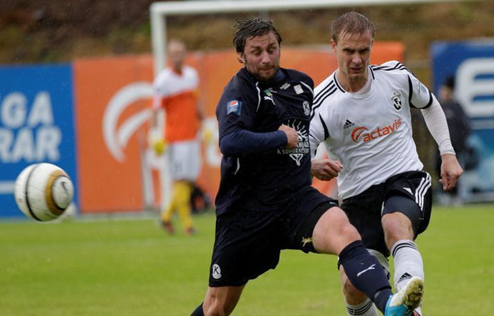 Hinn sextán ára Alexander Rafn Pálmason skoraði sigurmark KR gegn Keflavík, 3-2, á Meistaravöllum í gær. KR komst yfir með marki Arnórs Ingva Traustasonar, fyrrverandi leikmanns Keflavíkur, strax á 6. mínútu. Stefan Alexander Ljubicic, sem lék eitt tímabil með KR, jafnaði fyrir Keflavík á 53. mínútu og kom nýliðunum svo yfir á 77. mínútu. Varamaðurinn Stefán Árni Geirsson jafnaði eftir mikinn einleik á 88. mínútu og aðeins mínútu síðar skoraði Alexander sigurmark Vesturbæinga. KR hefur haft mikið tak á Keflavík á undanförnum árum og ekki tapað fyrir Suðurnesjaliðinu í efstu deild í átján ár. Síðasti sigur Keflavíkur á KR kom suður með sjó 8. júní 2008. Keflvíkingar unnu þá 4-2 sigur þar sem Guðmundur Steinarsson, sem var valinn leikmaður ársins þetta tímabil, skoraði tvívegis. Guðmundur Steinarsson átti oft góðu gengi að fagna gegn KR-ingum og skoraði tvö mörk í síðasta sigri Keflvíkinga á Vesturbæingum.vísir/vilhelm Síðan þá hafa KR og Keflavík mæst 24 sinnum í efstu deild. KR-ingar hafa unnið nítján leiki og fimm sinnum hafa liðin skilið jöfn. Markatalan er 48-11, KR í vil. Eftir tvö ár í Lengjudeildinni er Keflavík komið aftur í Bestu deildina. Liðið vann HK, 4-0, í úrslitum umspils á Laugardalsvelli síðasta haust. KR endaði aftur á móti í 10. sæti Bestu deildarinnar í fyrra. Önnur umferð Bestu deildarinnar fer í heild sinni fram á föstudaginn. Þá fær KR hina nýliðana, Þór, í heimsókn. Keflavík sækir hins vegar Fram heim. Fyrsti heimaleikur Keflavíkur er í 3. umferð þegar liðið fær Breiðablik í heimsókn. Sá leikur fer fram miðvikudaginn 22. apríl.