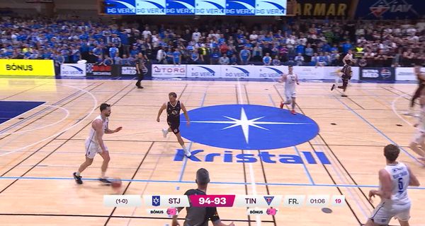 Viktor Lúðvíksson tók á honum stóra sínum í framlengingu með Stjörnunni í öðrum leik liðsins gegn Tindastól í undanúrslitum Bónus deildarinnar í körfubolta. Viktor tróð boltanum með tilþrifum.