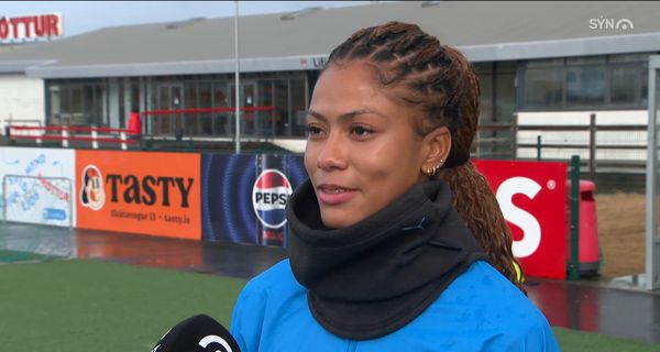 Sveindís Jane Jónsdóttir kemur á blússandi siglingu inn í komandi landsleiki Íslands í undankeppni HM sem fram fara í næstu viku. Valur Páll hitti Sveindísi á landsliðsæfingu dagsins.