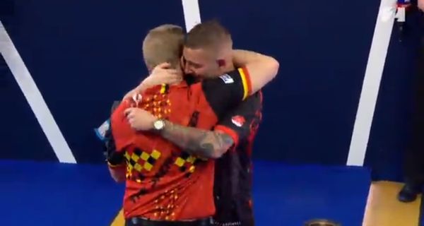 Skotinn Cameron Menzies missti stjórn á skapi sínu á HM í pílukasti í dag, vægast sagt tapsár eftir að hafa fallið úr leik gegn Englendingnum Charlie Manby.