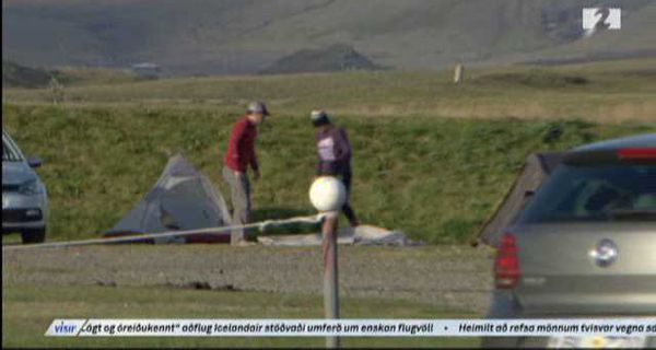 Eldgosið á Reykjanesi er í fullum gangi. Í morgun, 24. júlí, brast gígbarmurinn til norðurs. Vefmyndavél Vísis náði því á myndband.