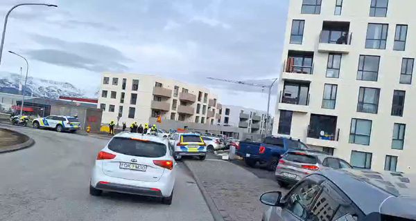 Hópur lögreglumanna tók þátt í aðgerð í Skútuvogi í Reykjavík þar sem maður var snúinn niður að lokinni eftirför um borgina.