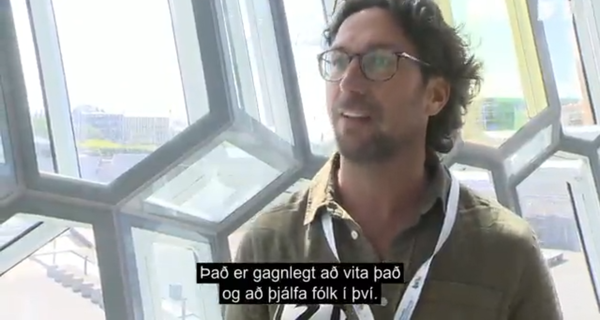 Einn þekktasti steinn landsins, Steinninn undir Þverfellshorni í Esju, var reistur við í dag, en hann valt í apríl síðastliðinum og rann niður hlíðina.